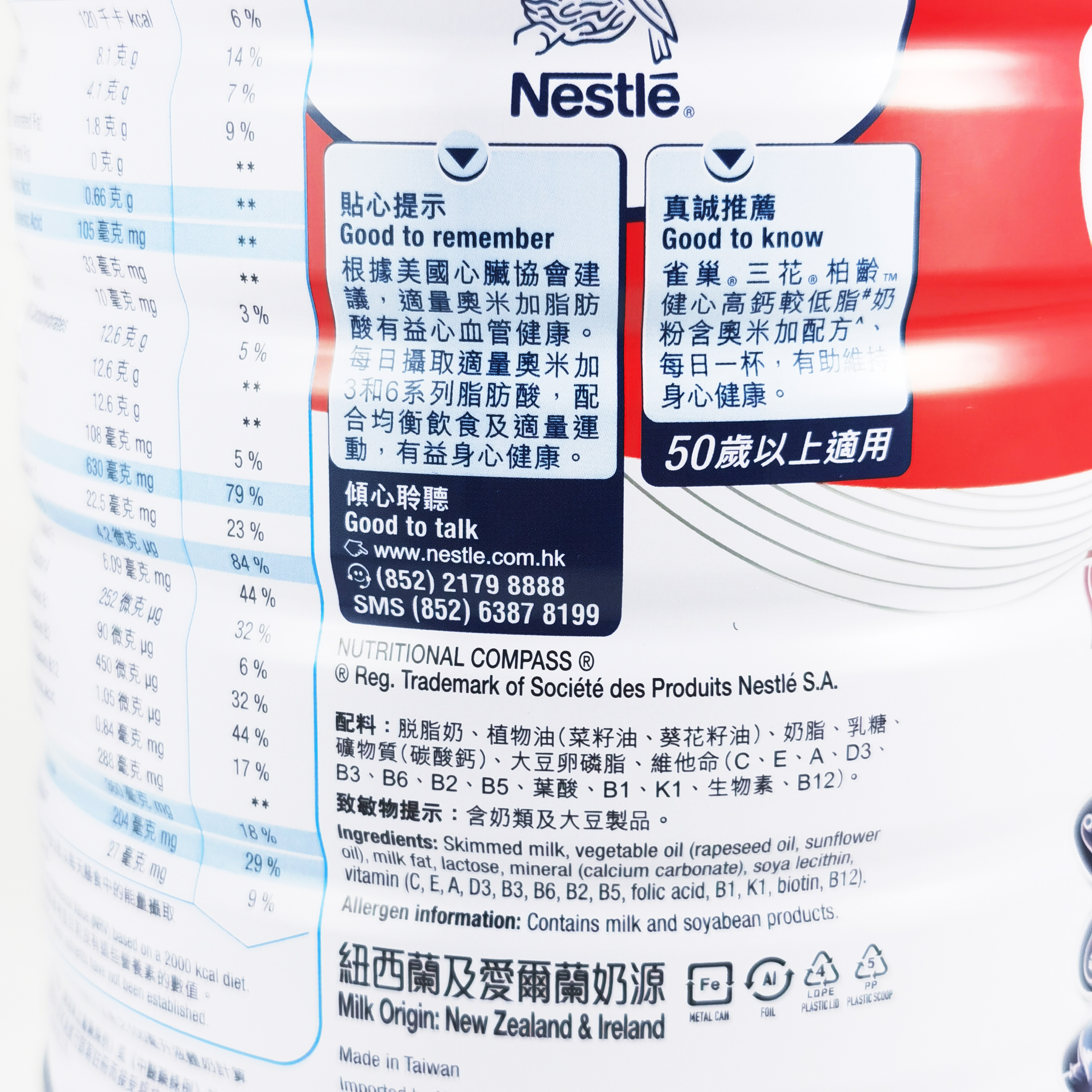 香港版雀巢三花柏龄健心 高钙低脂奶粉 50岁以上中老年人父母营养