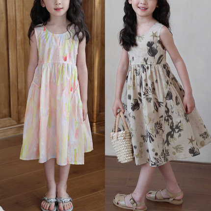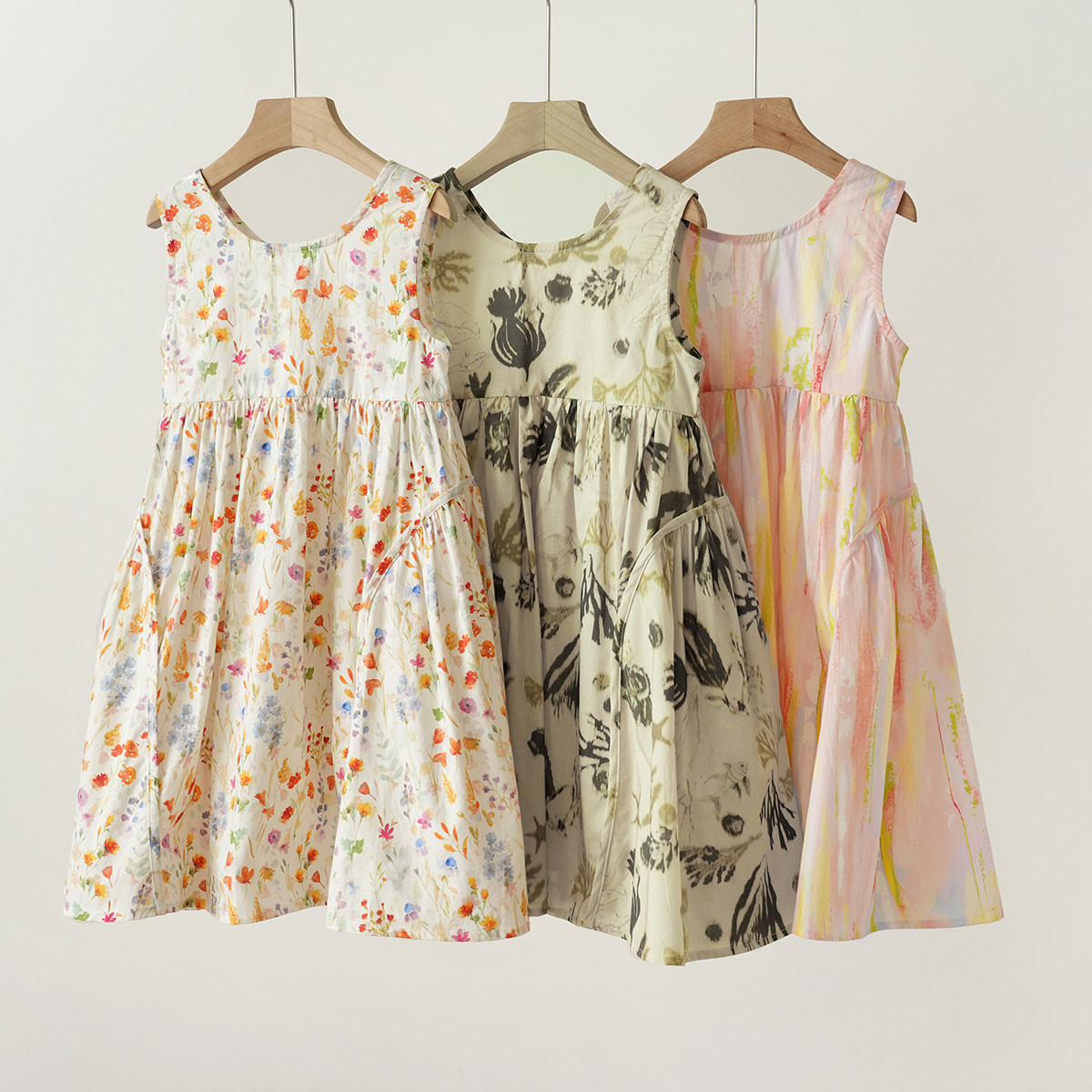 60支 精梳棉纯棉 女童全棉背心连衣裙 圆领数码印花裙 中大童夏款