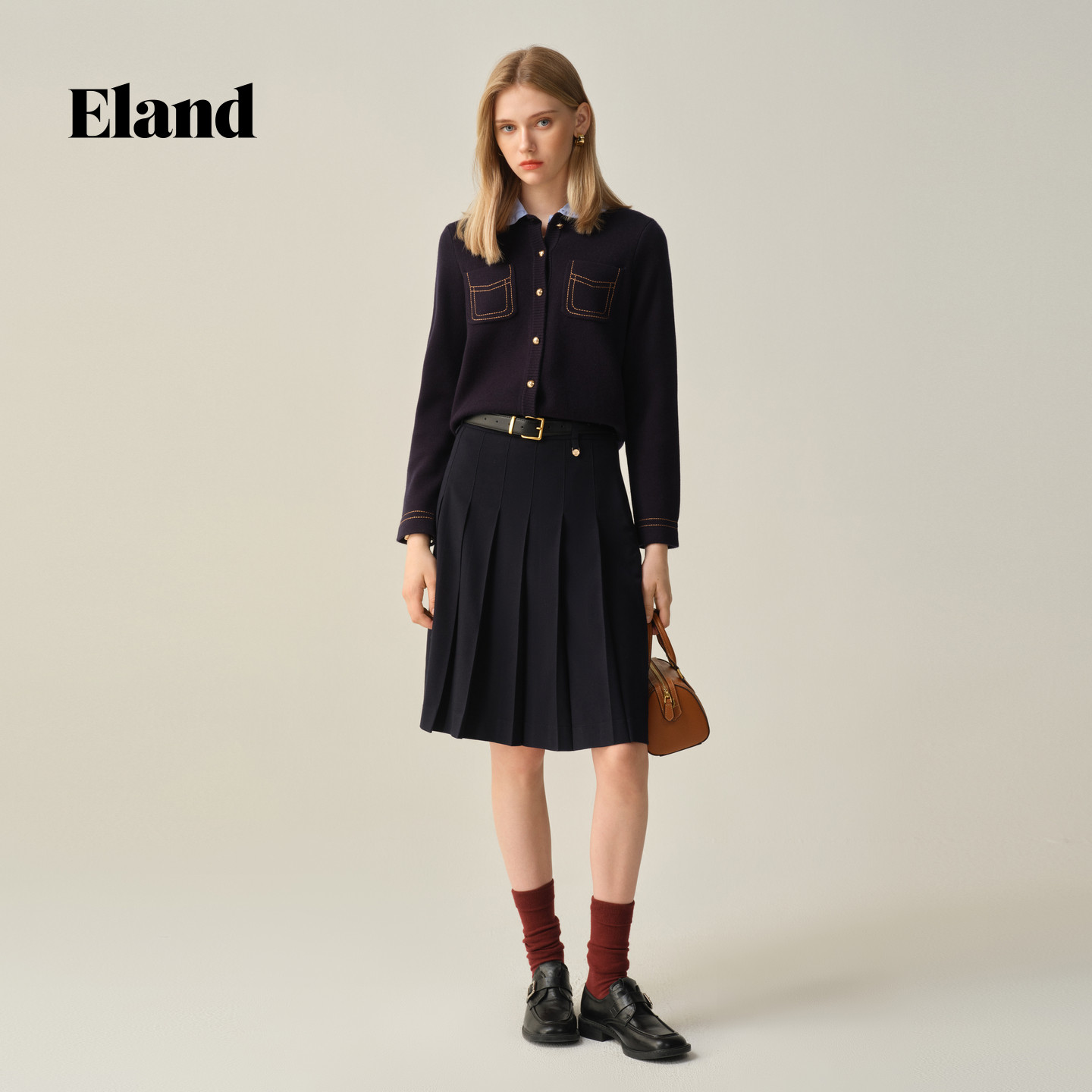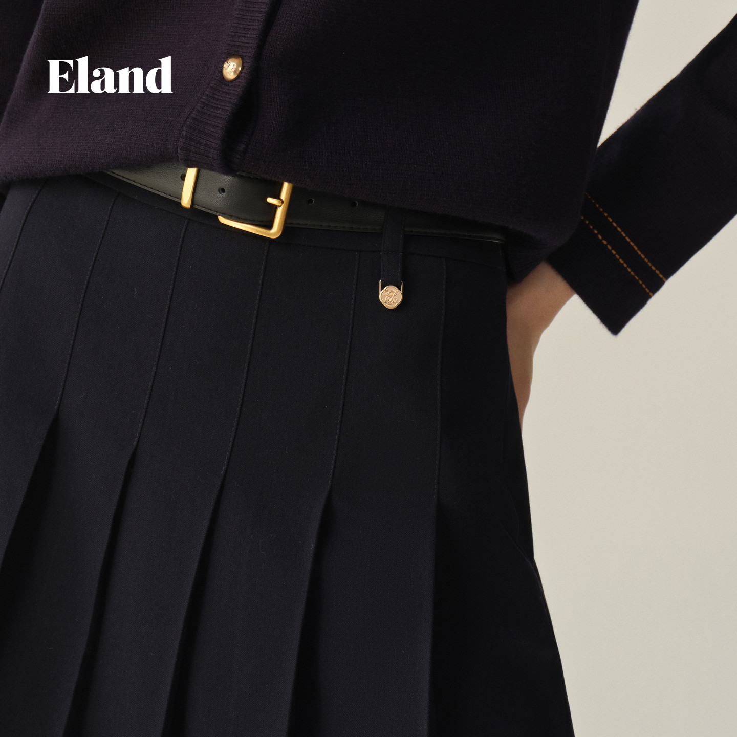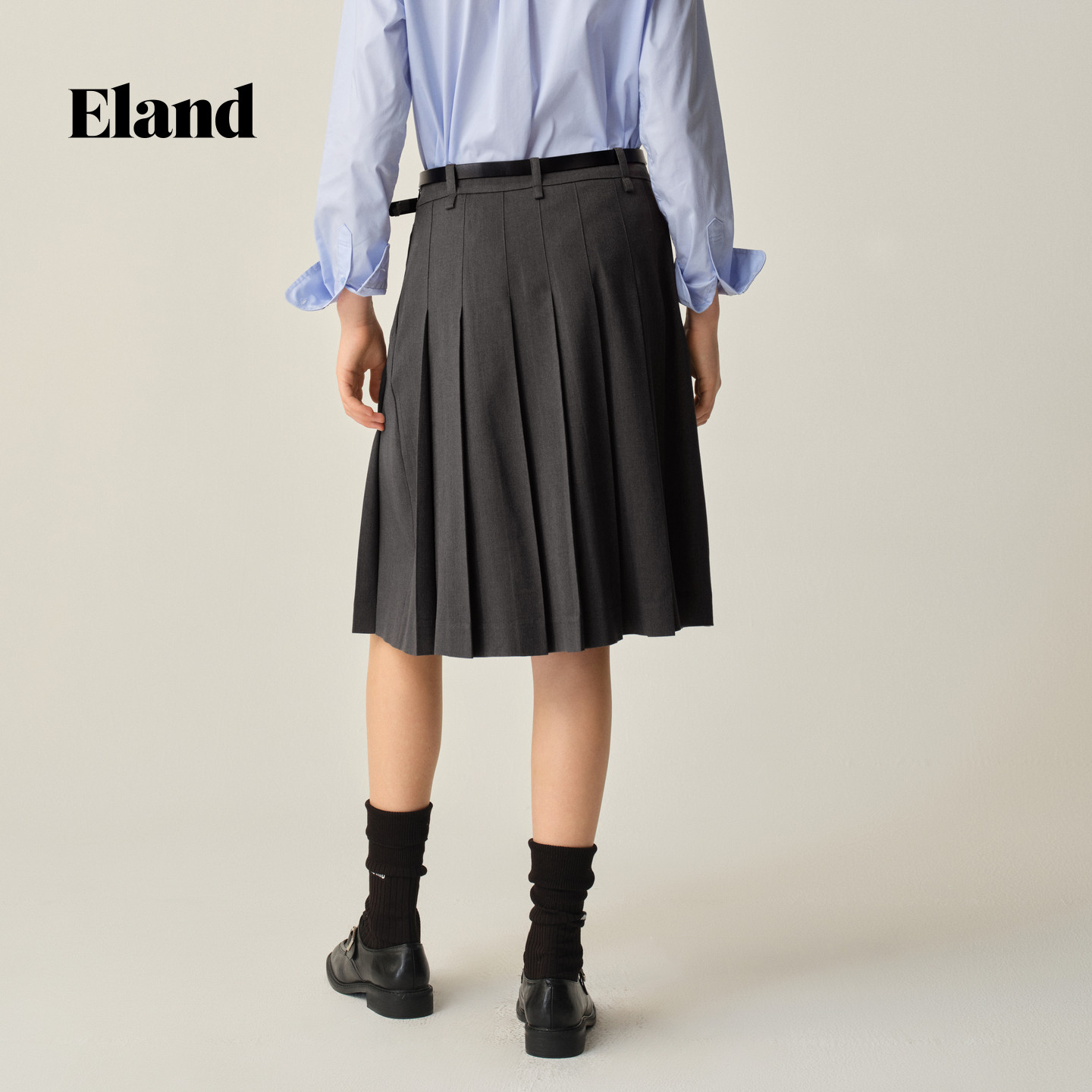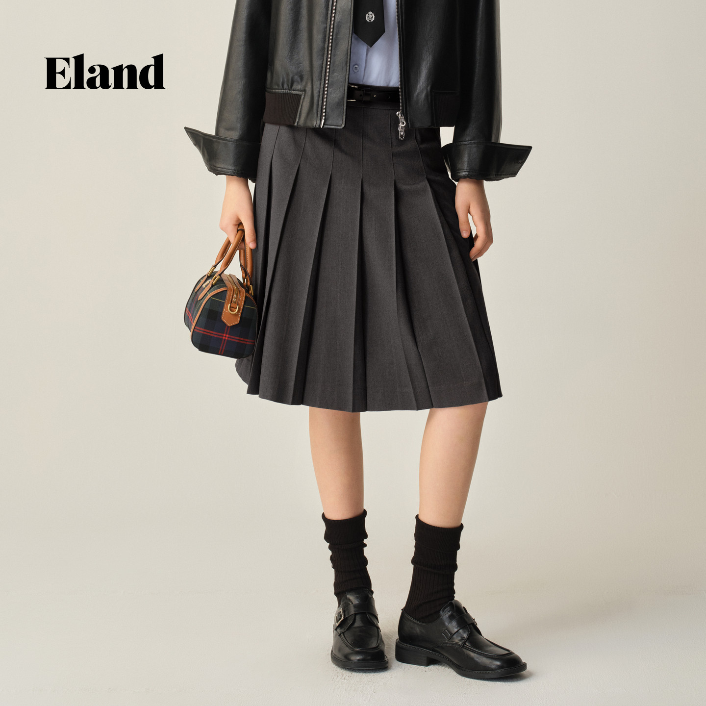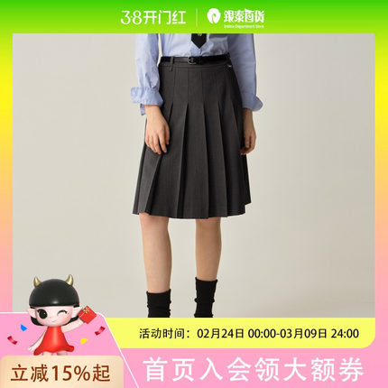 Eland衣恋半身裙女学院风显瘦中长款百褶裙2025秋季新款EEWHF49E04