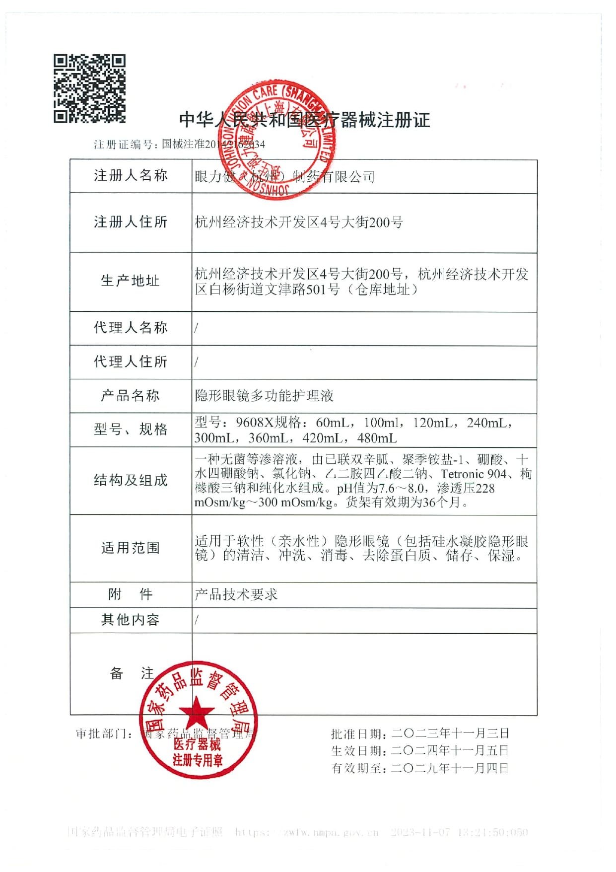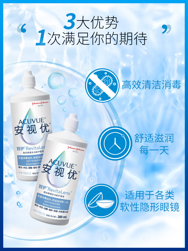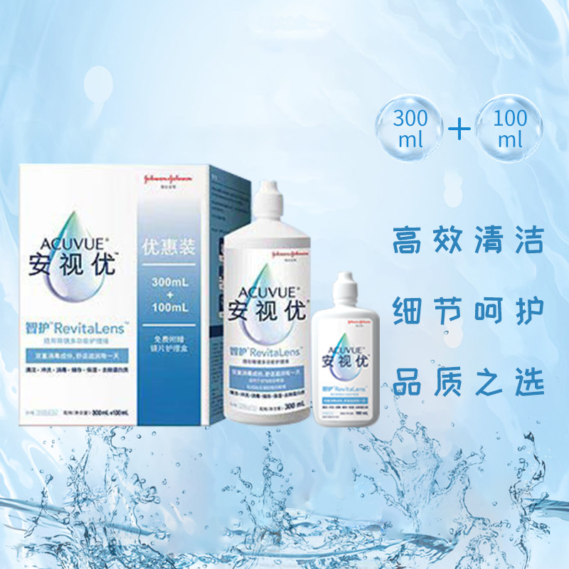 强生智护隐形眼镜多功能护理液300+100ML美瞳药水安视优旗舰正品