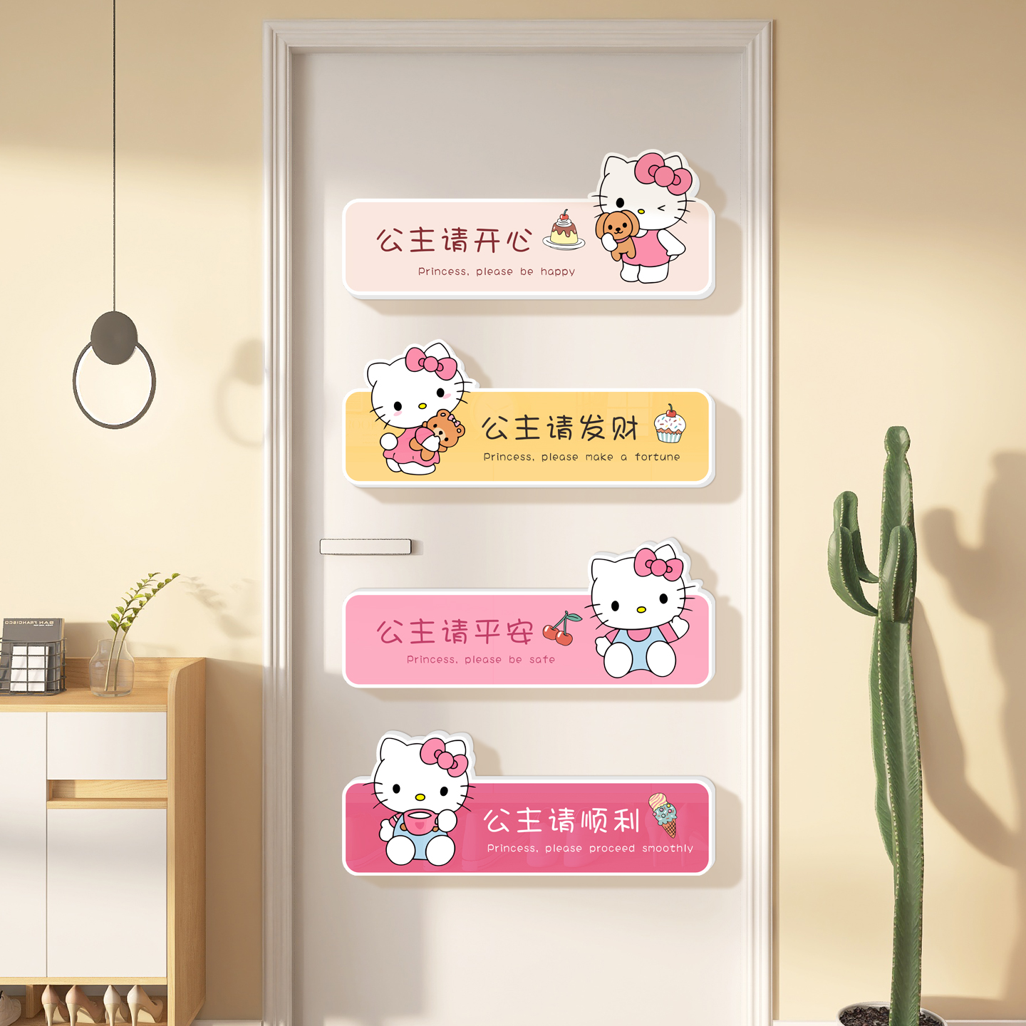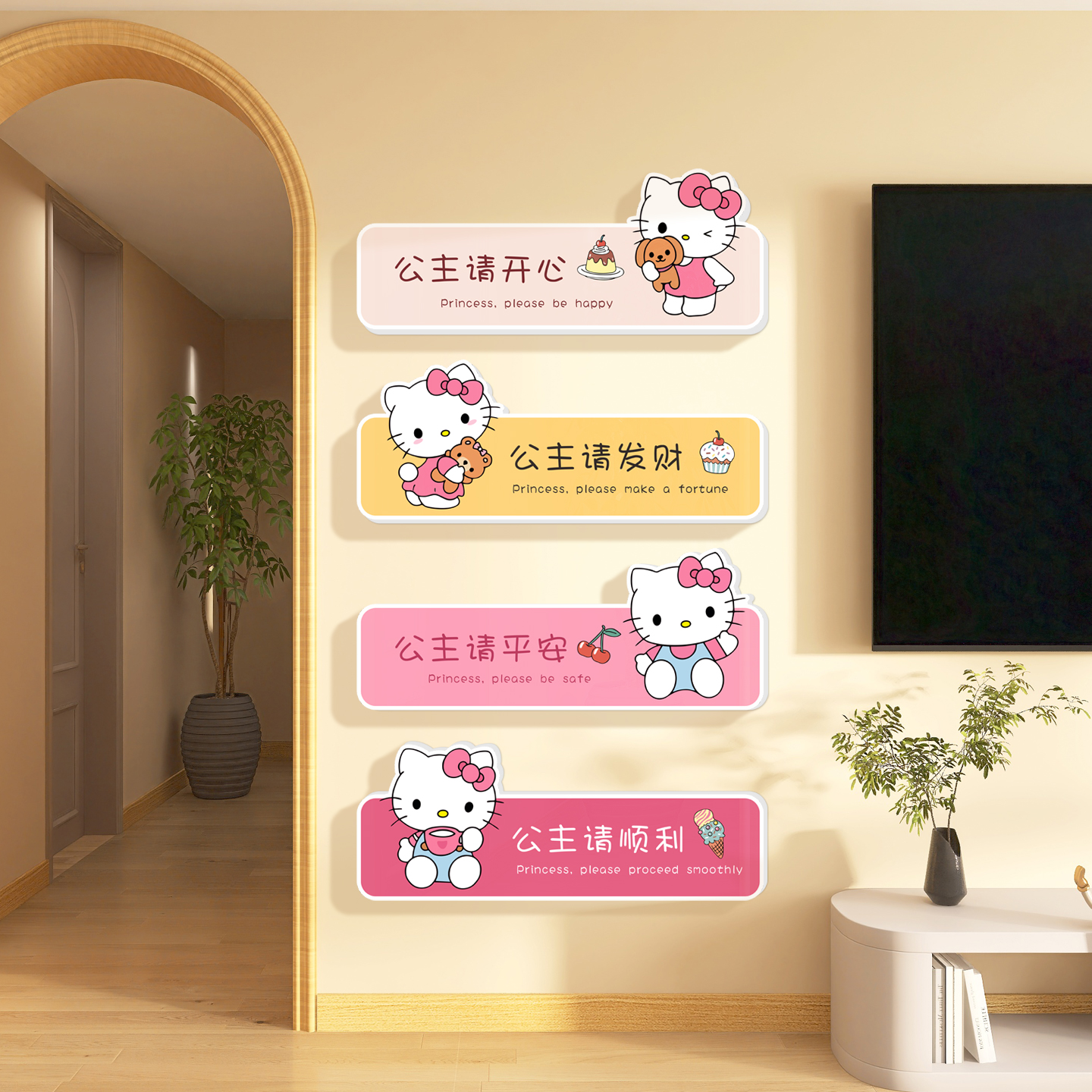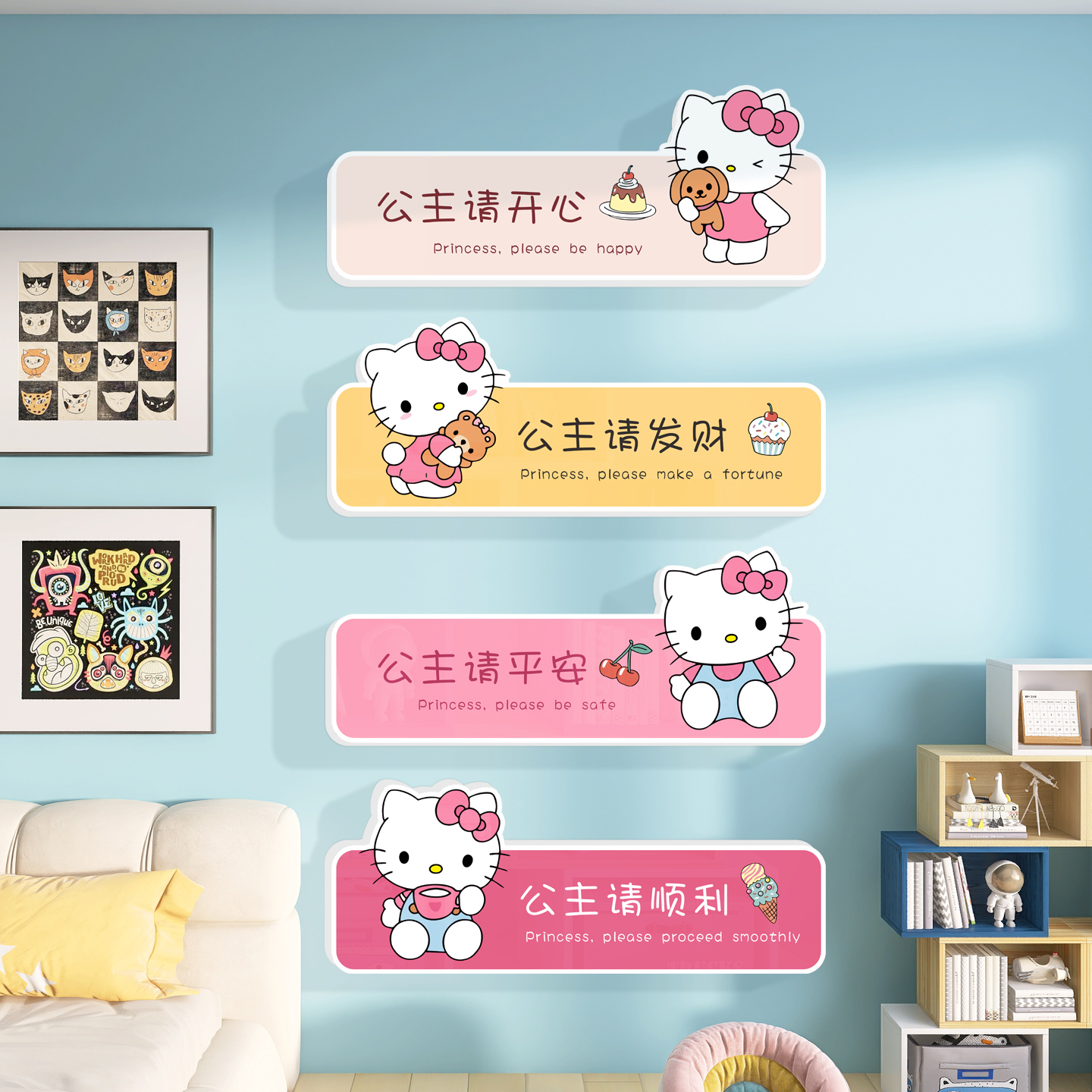 hellokitty猫墙面贴纸画儿童房间布置装饰品公主女孩卧室床头背景
