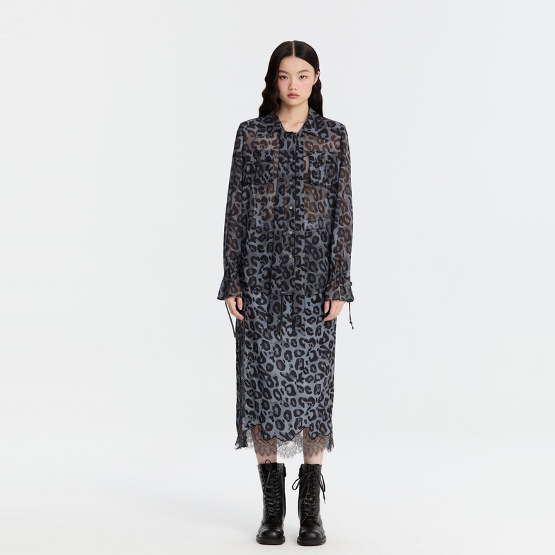 REVAN芮范新品设计师款酷感豹纹印花宽松中裙RM91503183