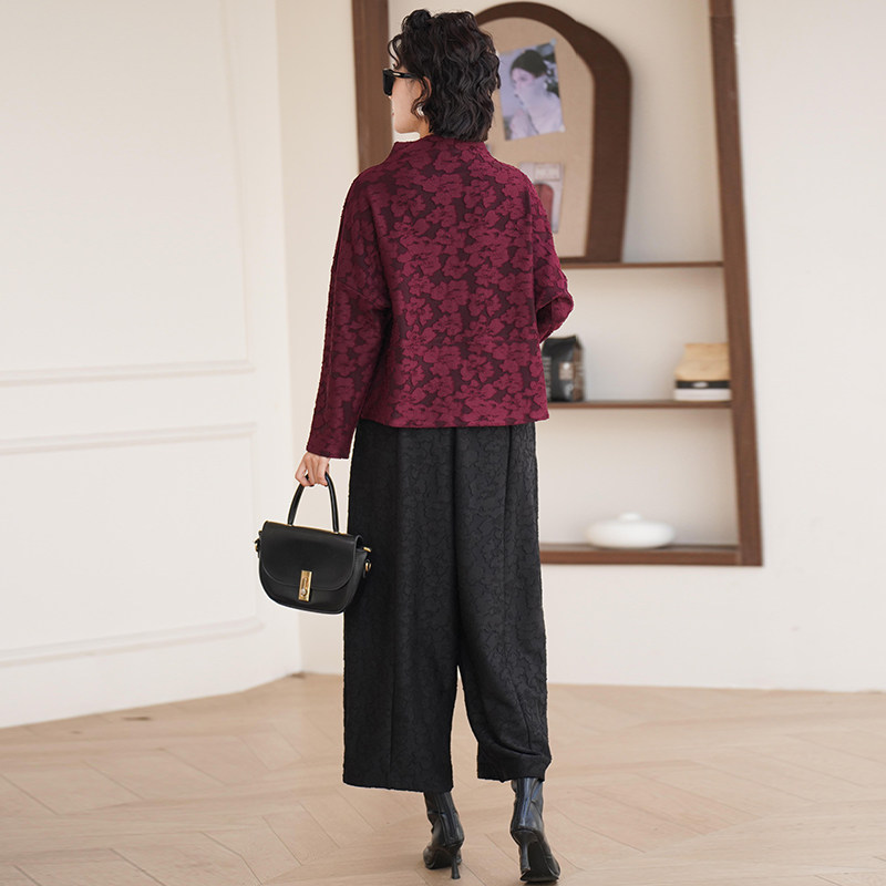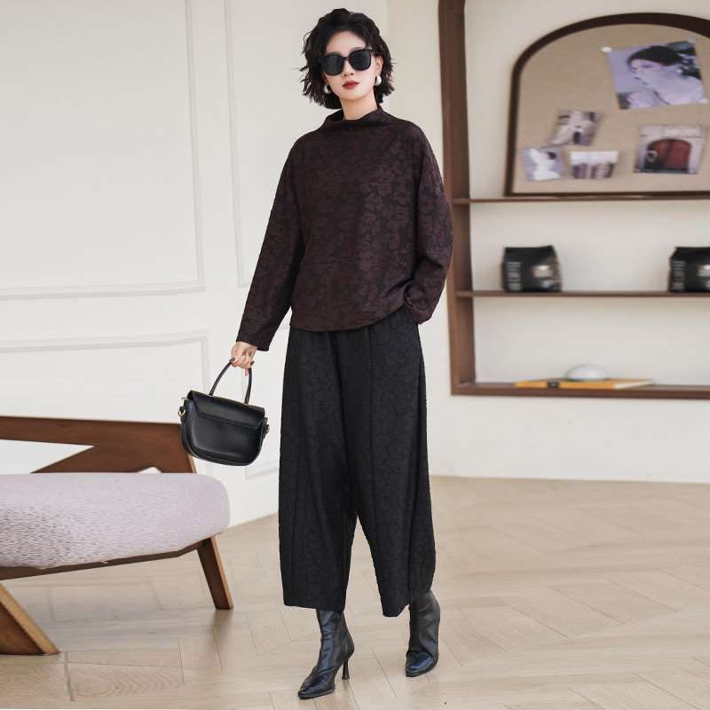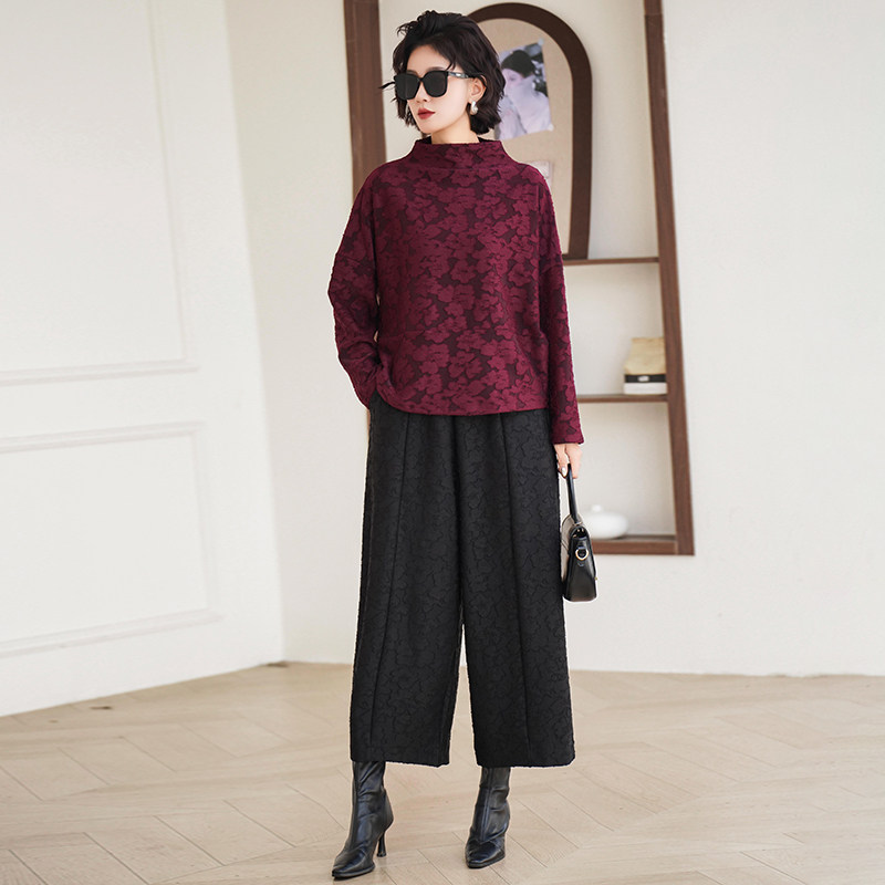 气质妈妈高端复古套装大码提花遮肚上衣百搭宽松阔腿裤显瘦两件套