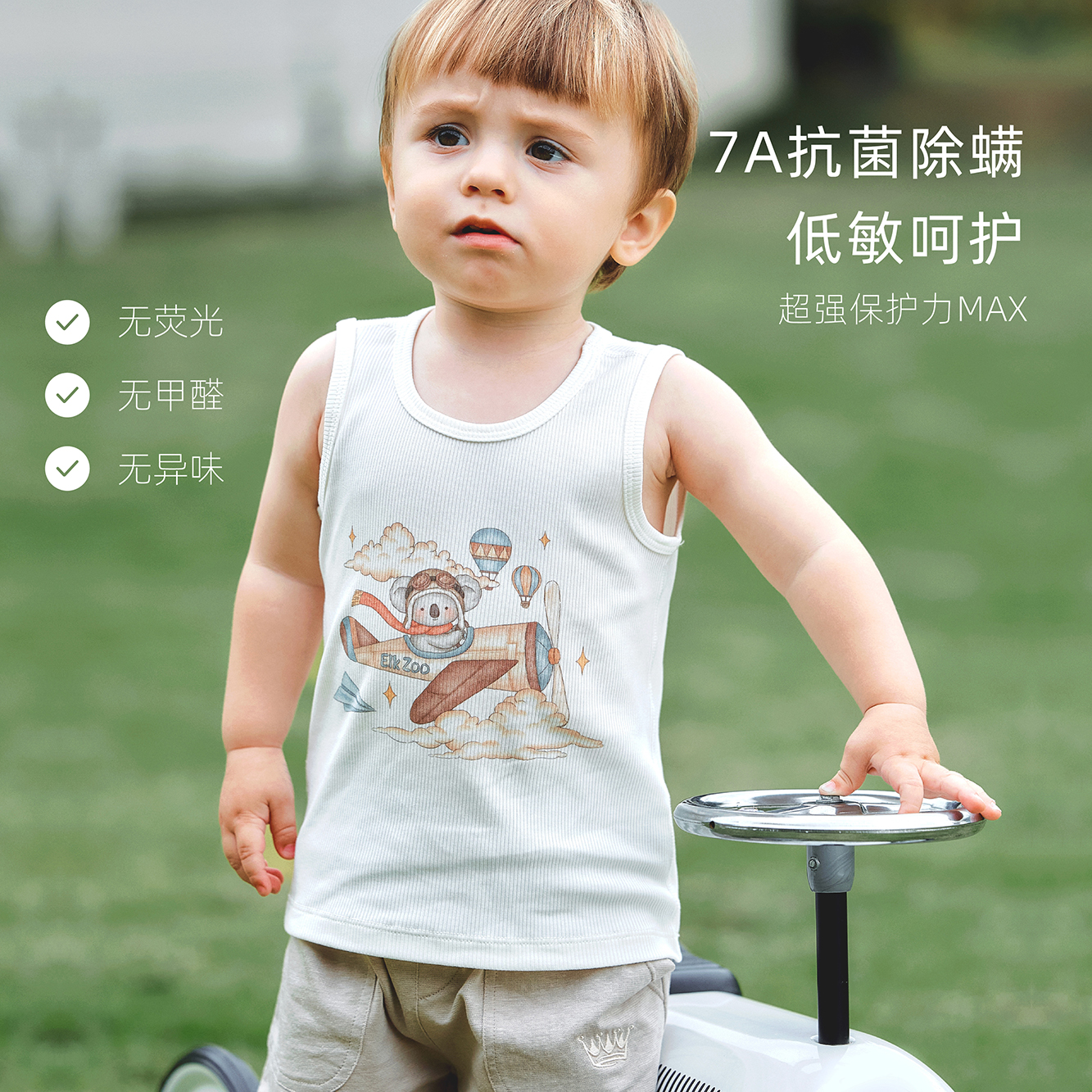 Elk Zoo儿童背心莫代尔棉男女宝宝内搭无袖打底外穿上衣家居服