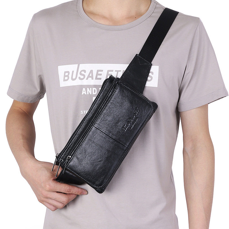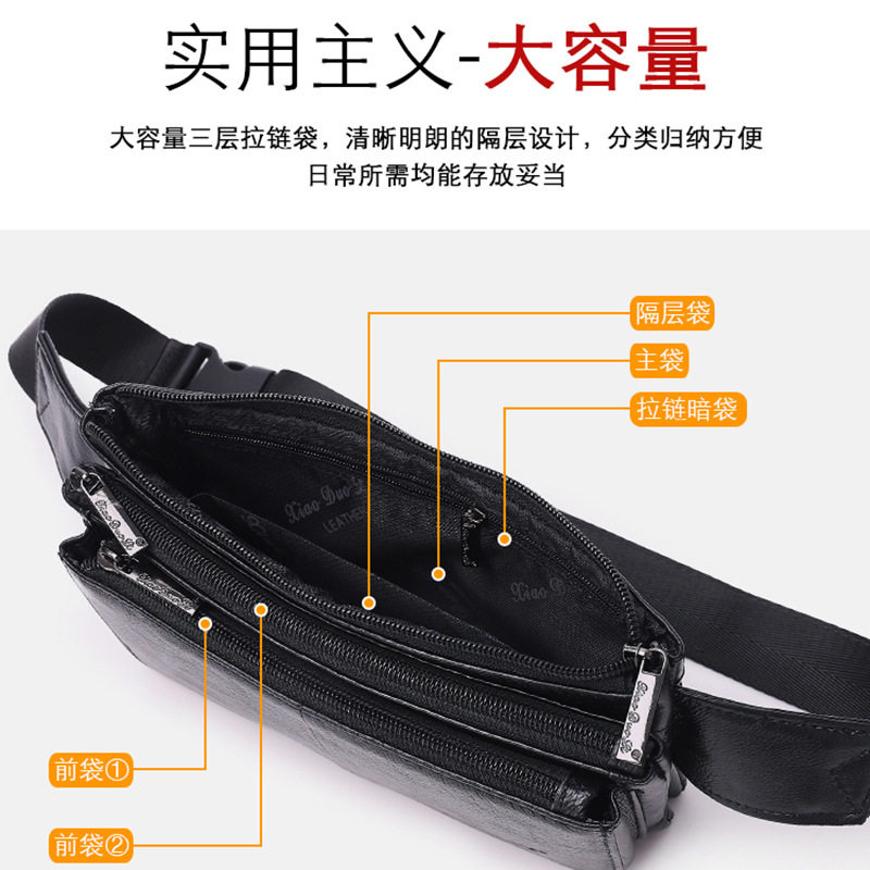 牛皮腰包多功能斜挎包迷你胸包多隔层零钱腰包真皮手机腰包证件