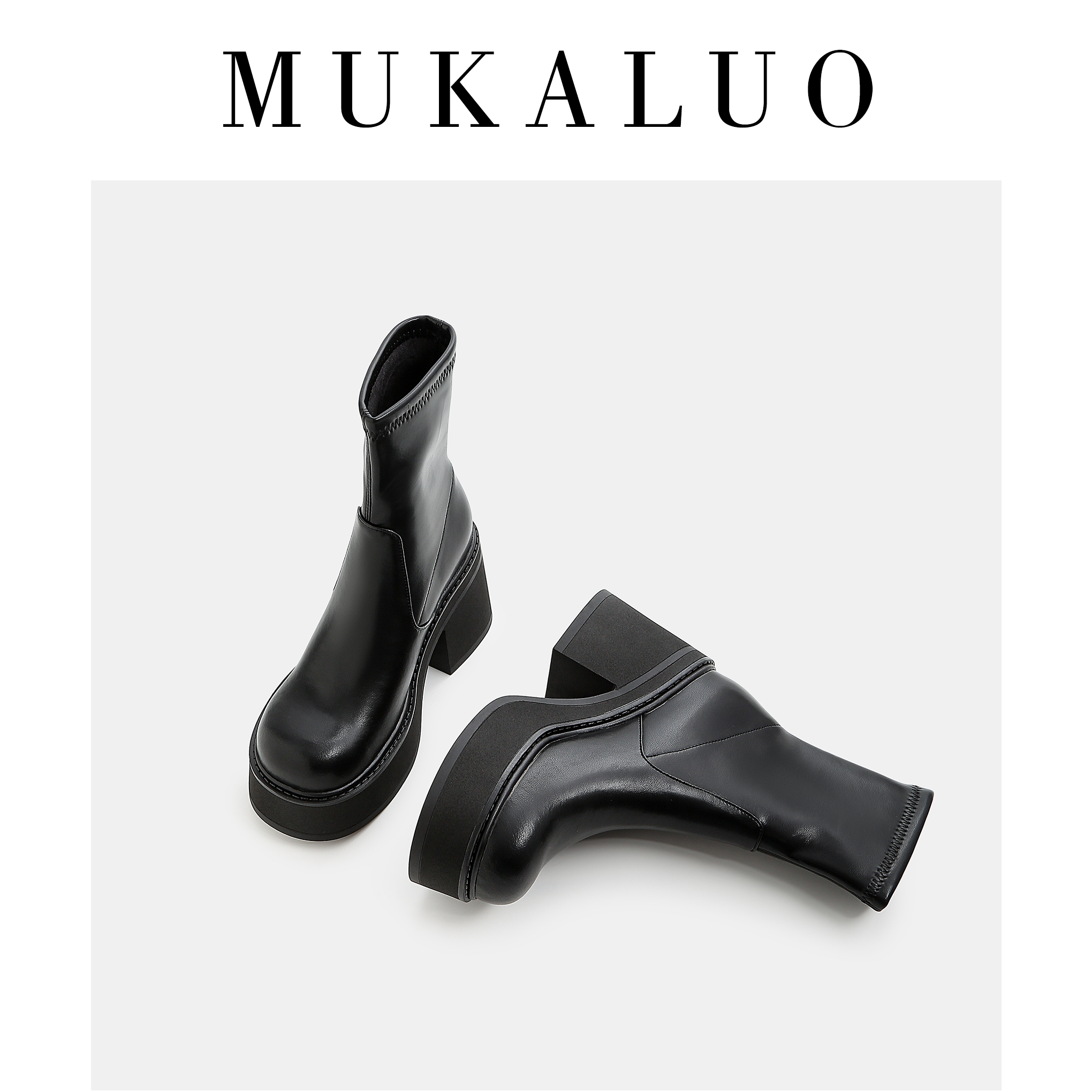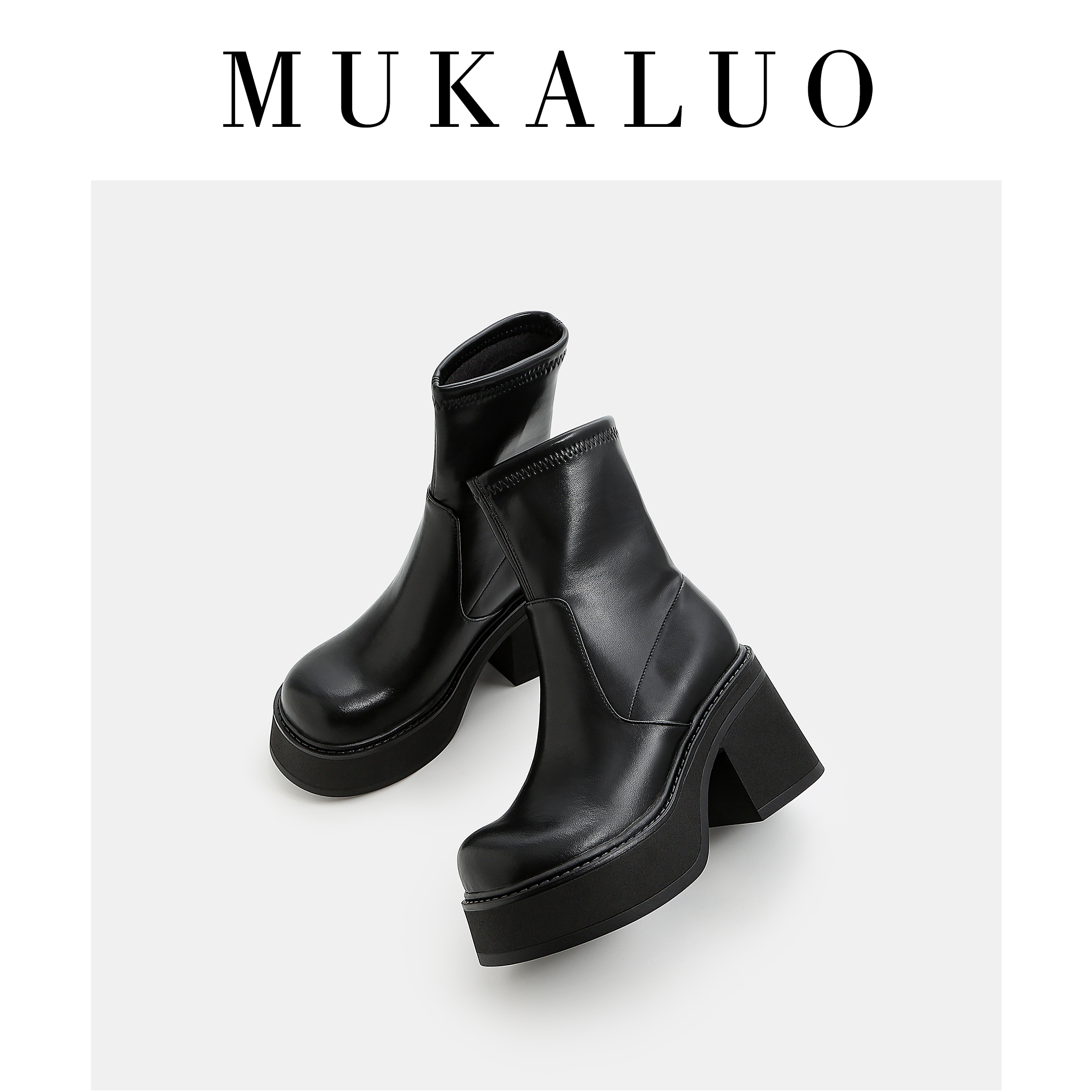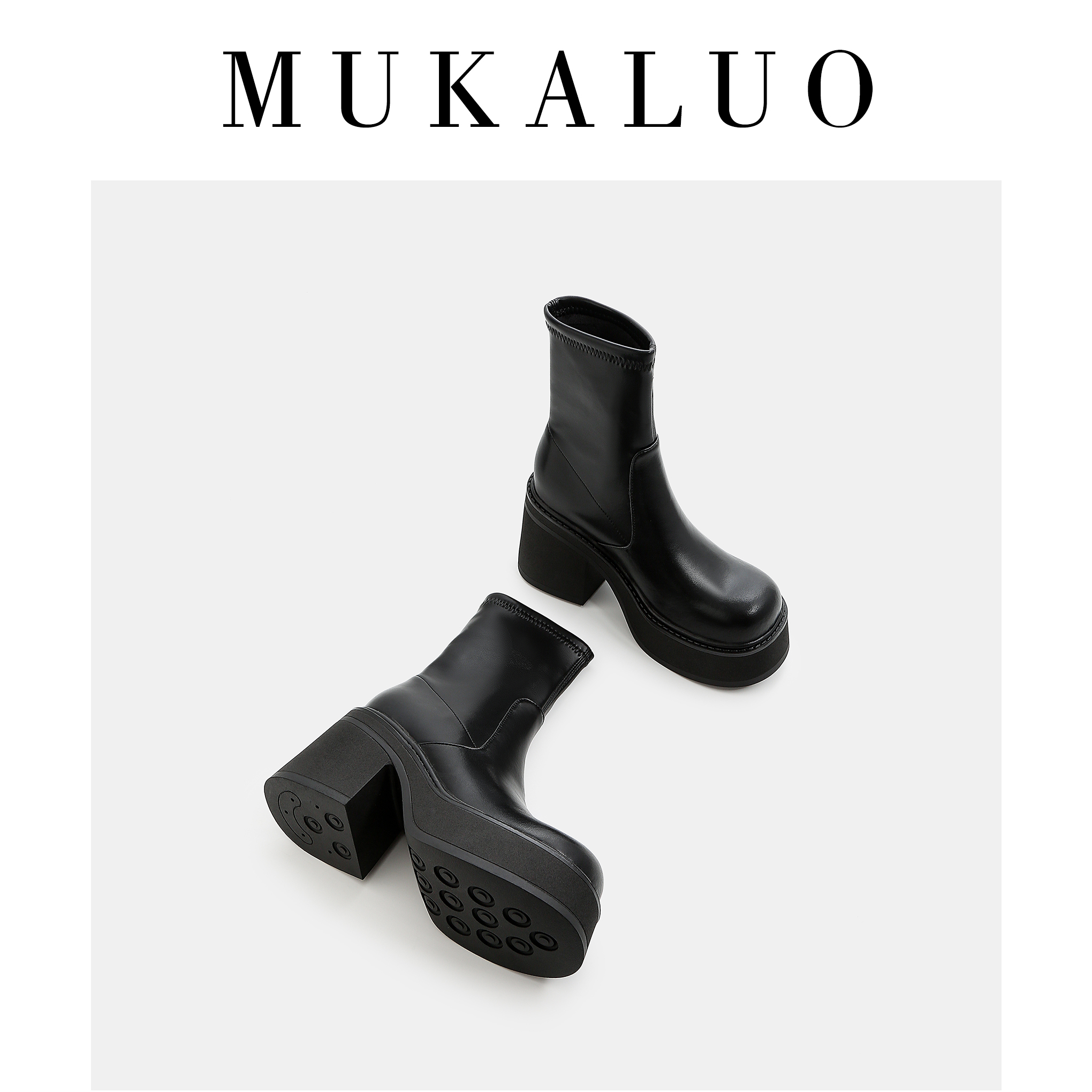 厚底防水台高跟弹力瘦瘦靴女2025秋冬新款粗跟套筒时尚短靴时装靴