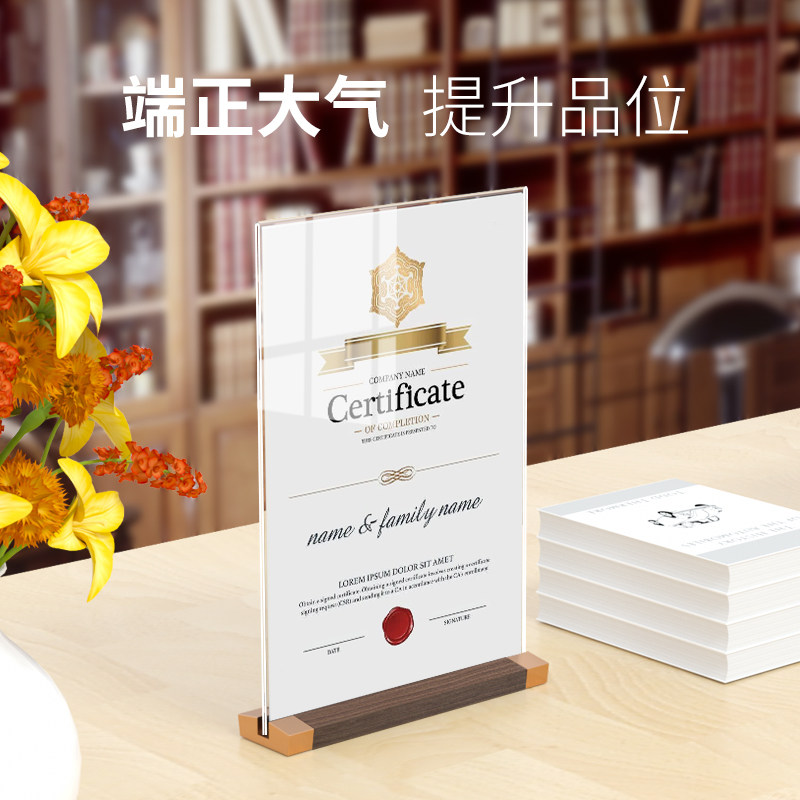 木质实木台签 双面桌牌台卡架展示牌 a4亚克力餐厅餐牌a5台牌架水牌广告牌奶茶店菜单立牌台签桌面价格牌榉木