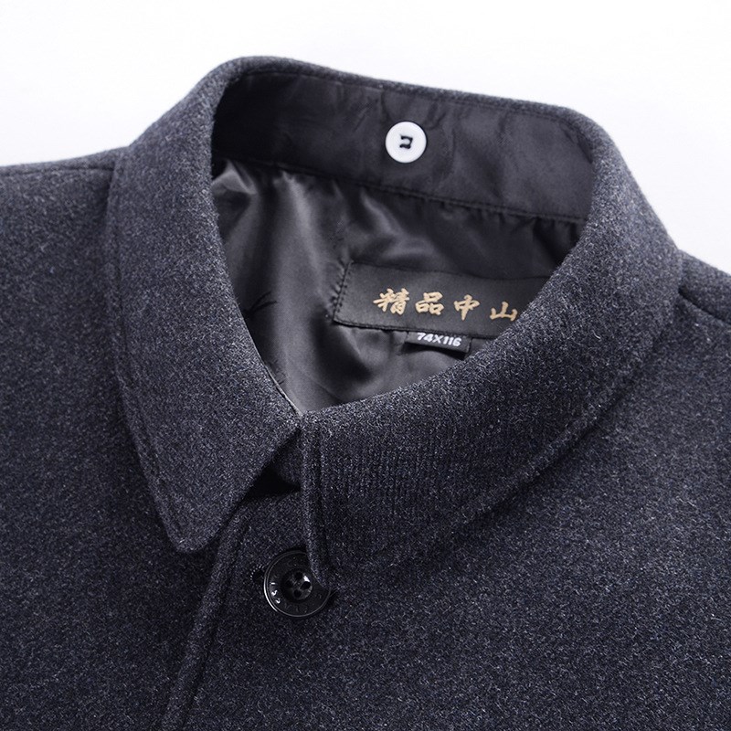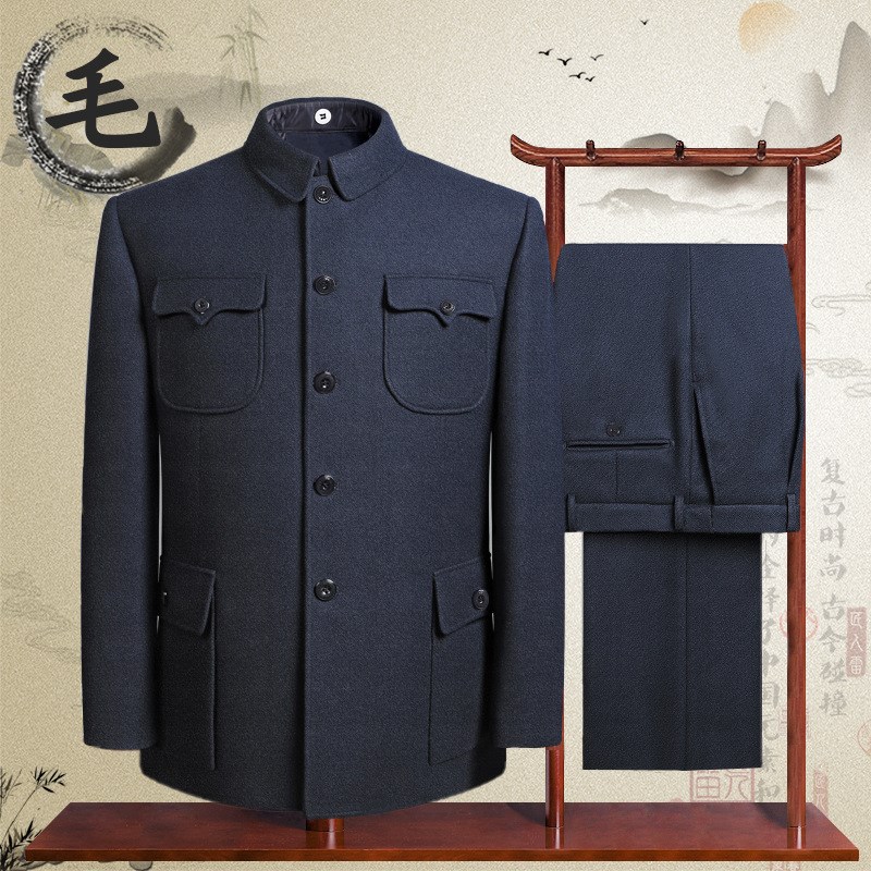 中老年男士羊毛呢中山装爸爸装老式中山服外套春秋款高档中式唐装