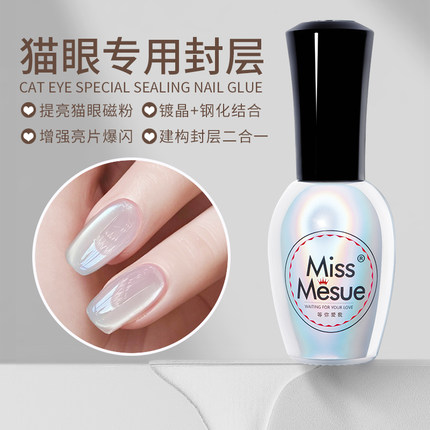 猫眼专用镀晶封层指甲油胶美甲亮片冰透胶专用超亮钢化玻璃封层胶