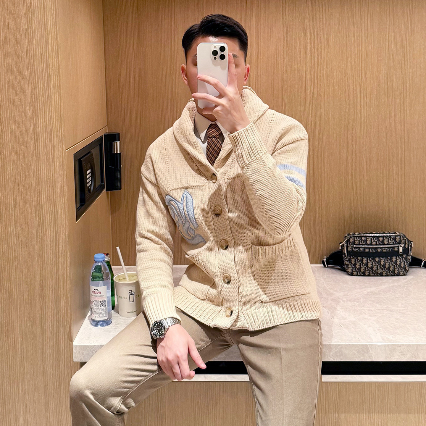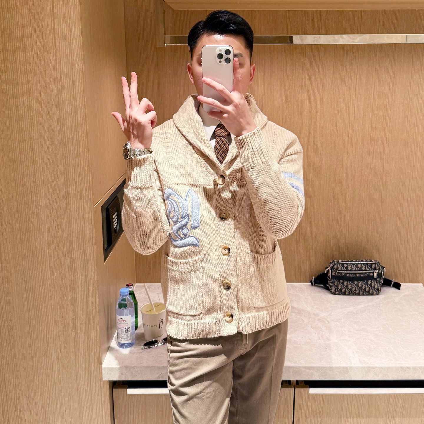 英伦复古高级青果领商务男士开衫毛衣冬季加厚保暖衣服针织外套男