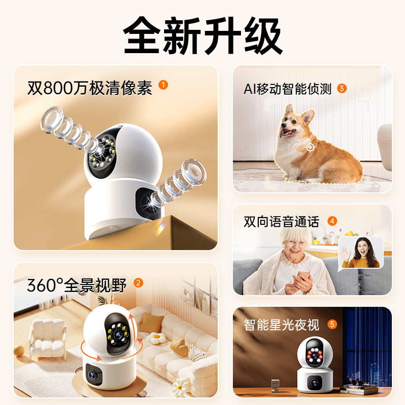 看护家双镜头室内云台监控摄像头
