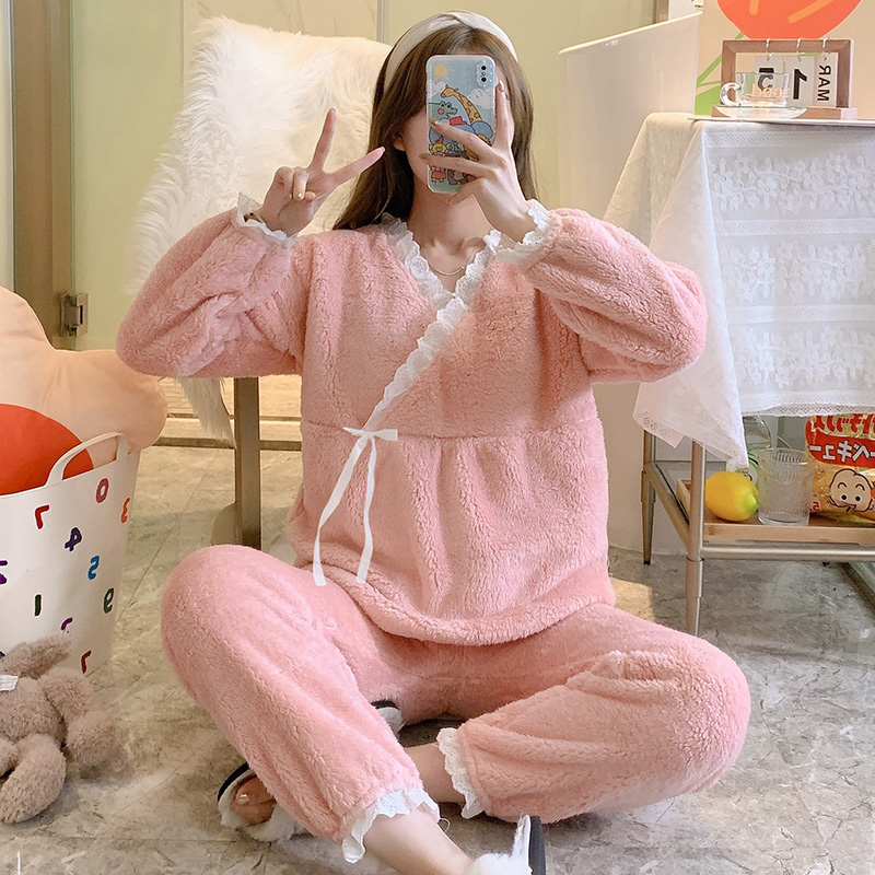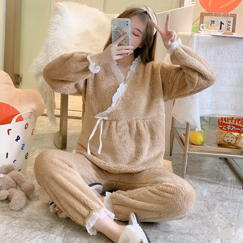 加厚珊瑚绒月子服冬季孕妇睡衣