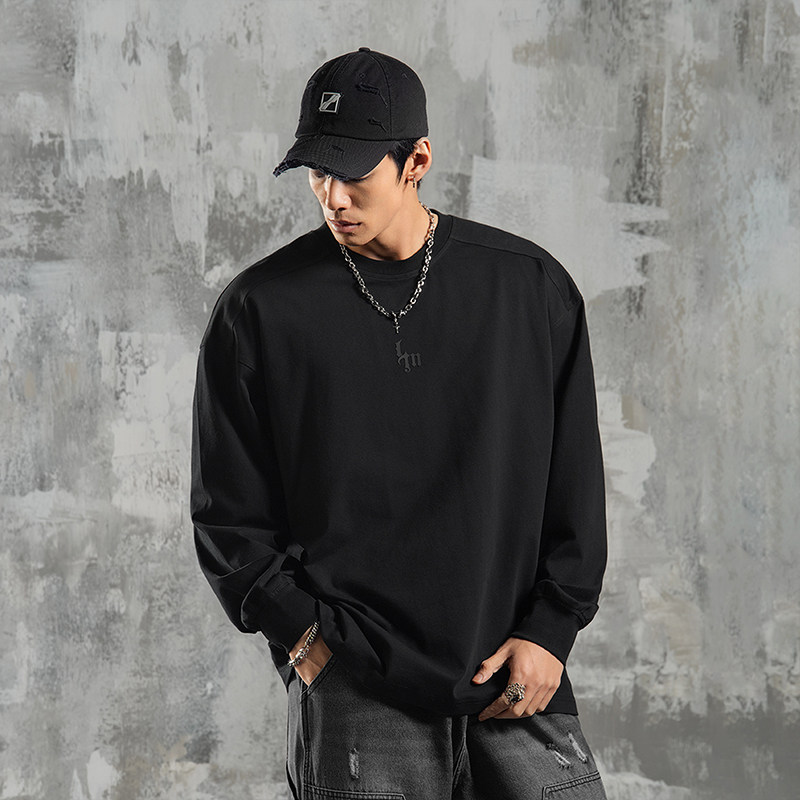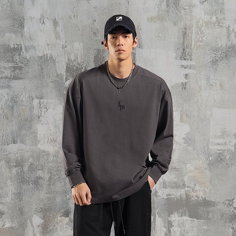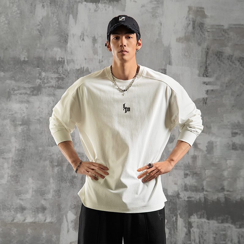 鹿家门运动健身长袖T恤男春季极简风宽松大码美式防晒速干打底衫