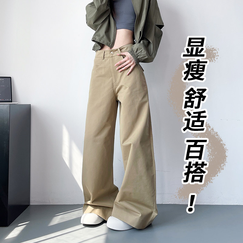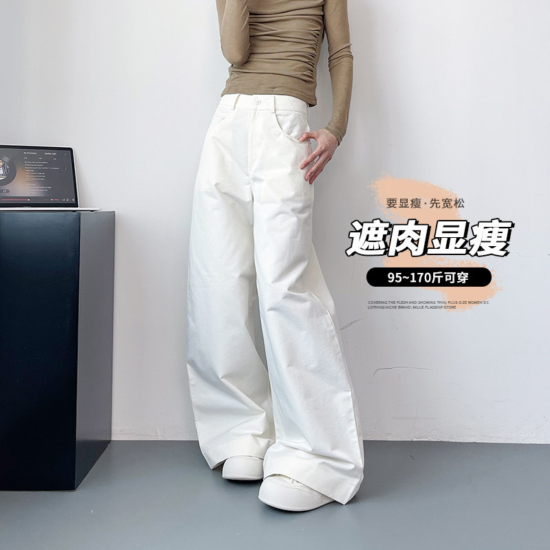 大码西装裤2025春季新款胖mm高腰宽松显瘦阔腿垂坠感微喇叭休闲裤