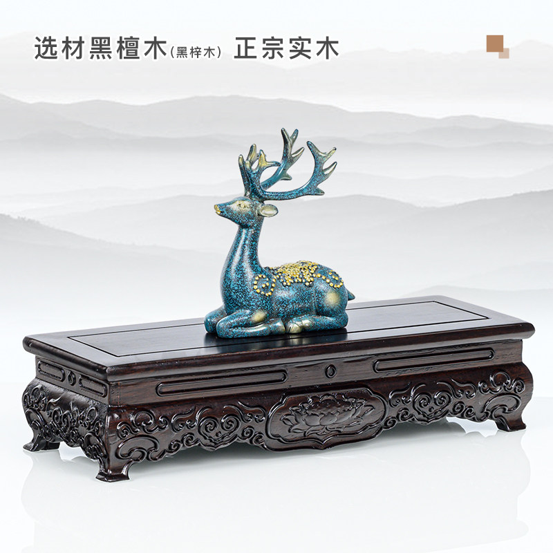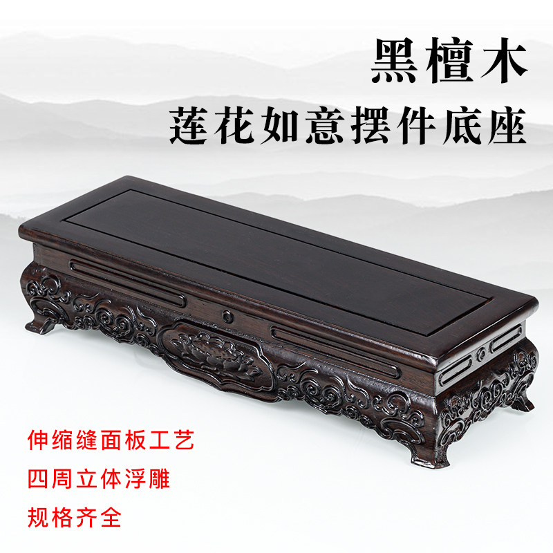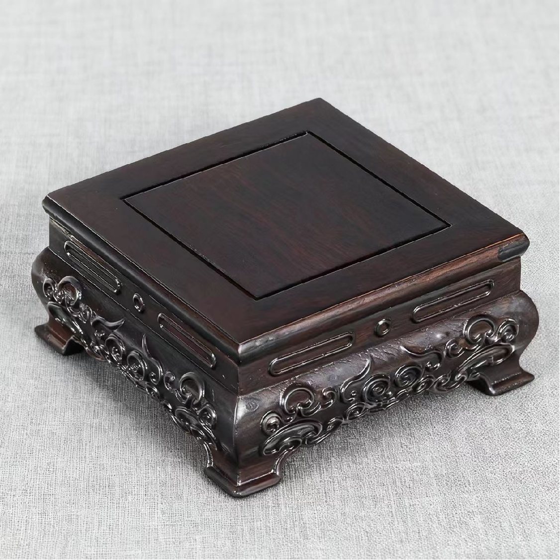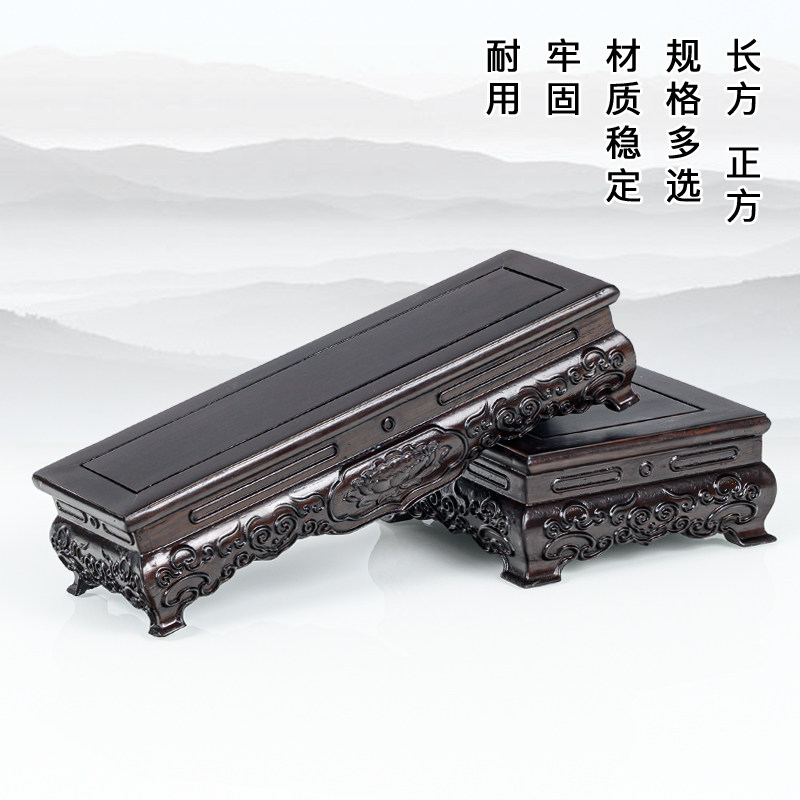红木雕刻工艺品佛像观音财神摆件长方形花瓶盆景奇石底座实木托架