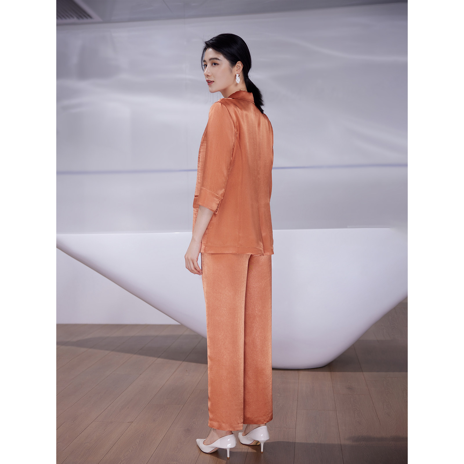 【商场同款】BBLLUUEE粉蓝衣橱2025夏装亮光丝滑醋酸西装薄外套女