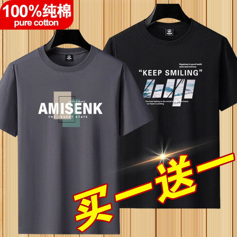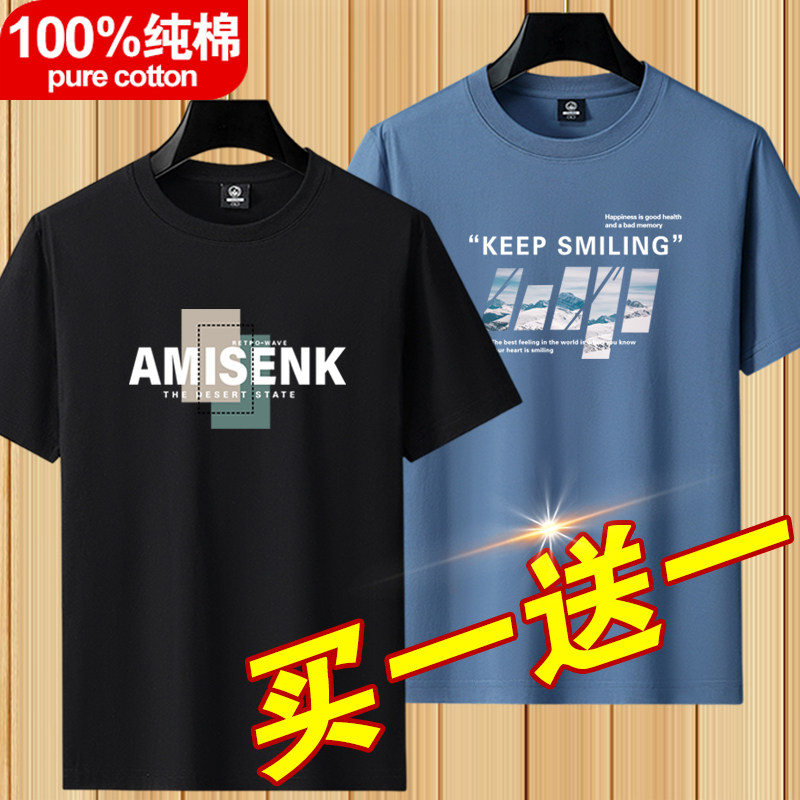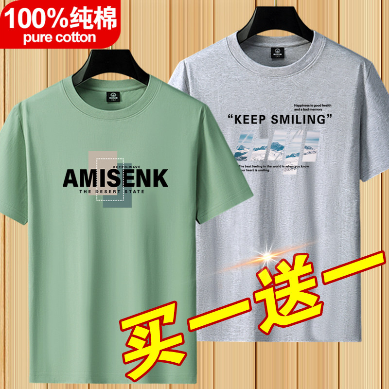 100%新疆纯棉短袖t恤男夏季新款2025圆领宽松体恤半袖百搭打底衫