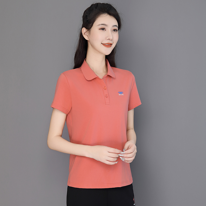 摩力克妈妈夏装纯棉t恤短袖中年女装宽松上衣2024新款翻领polo衫