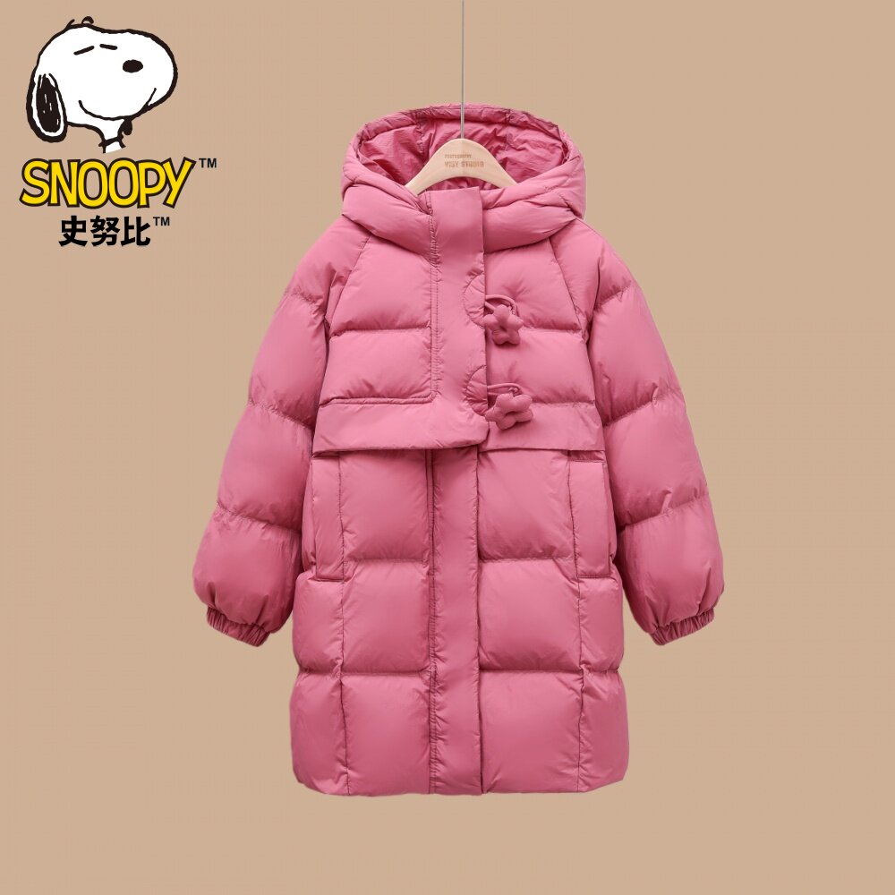 史努比女童羽绒服厚中长款白鸭绒