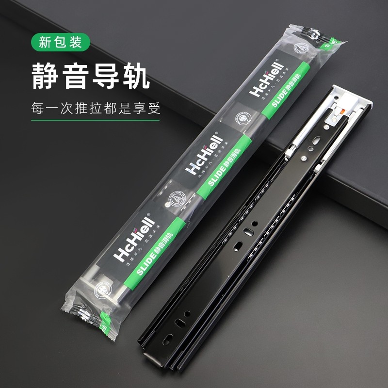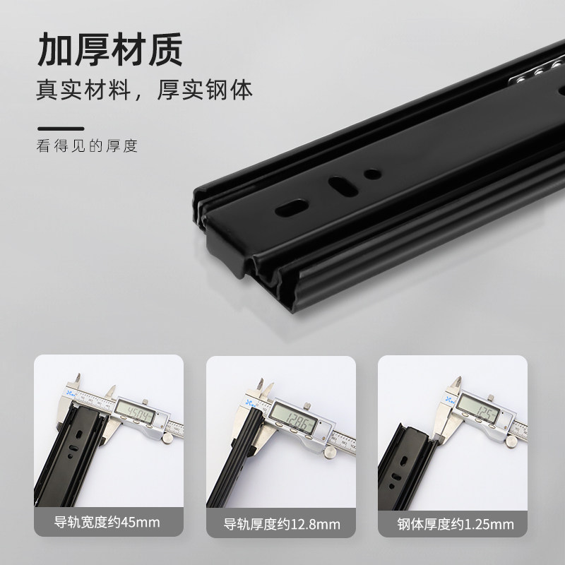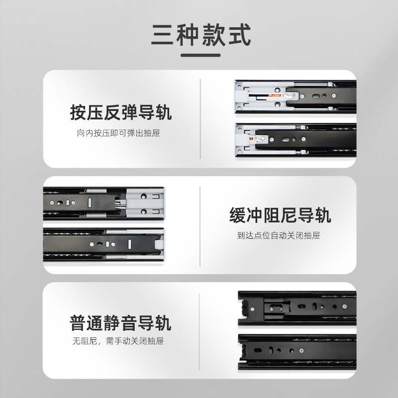加厚静音滑轨键盘托架导轨缓冲家具三节轨道抽屉免拉手反弹三节轨