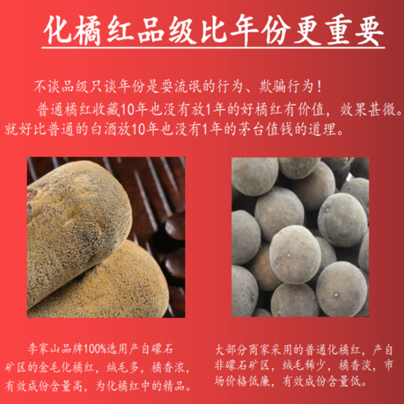 李家山牌正宗原生金正毛化州橘红正毛陈年化橘红圆果切片桔红120g