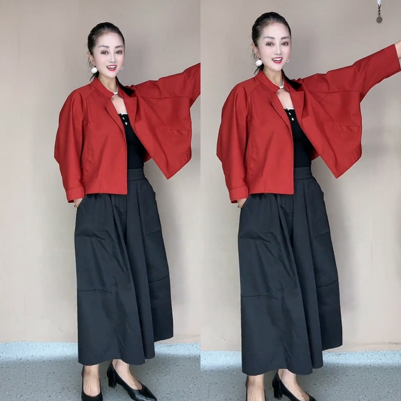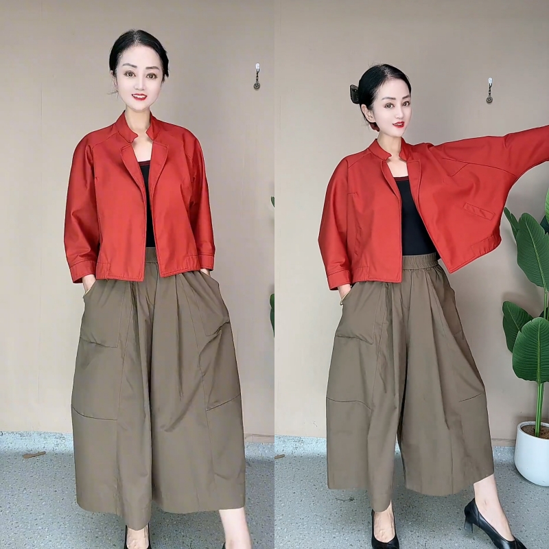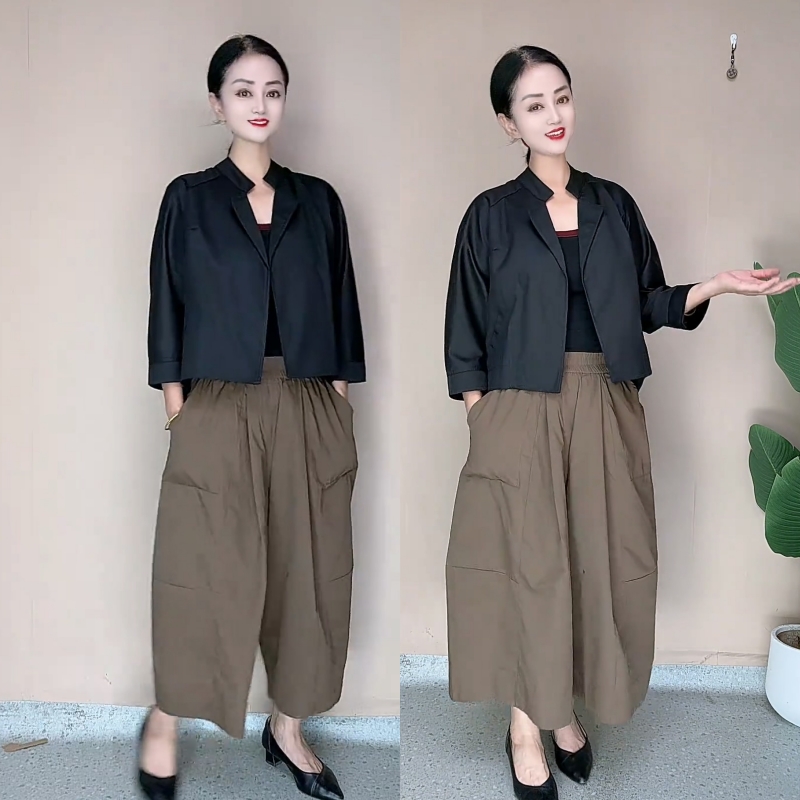 2025早秋新款时尚套装女大码宽松遮肉上衣短外套气质阔腿裤两件套