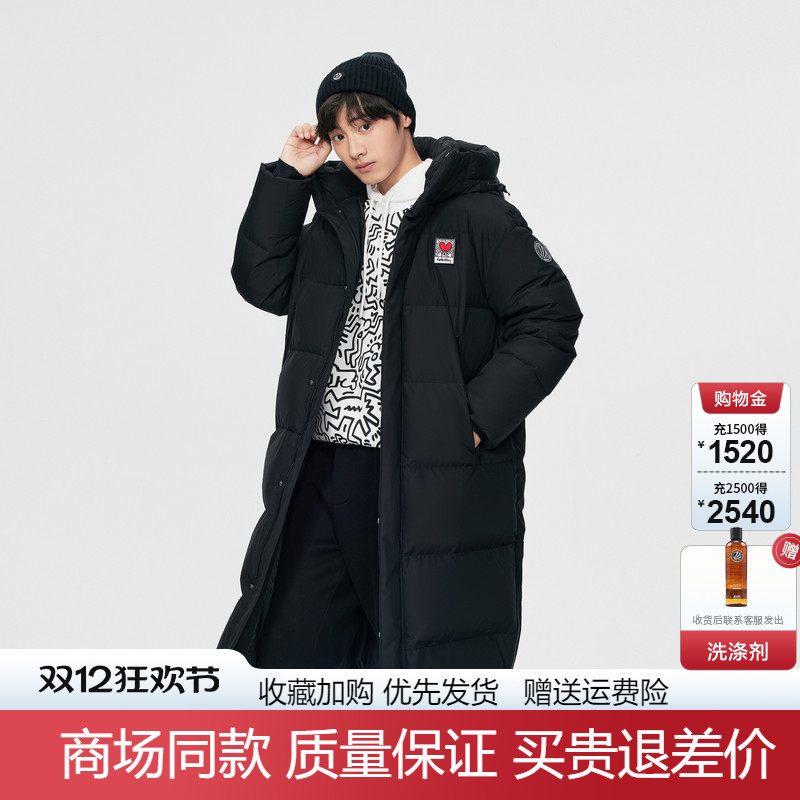 波司登羽绒服男士长款过膝青年时尚运动女式加厚连帽保暖黑色外套