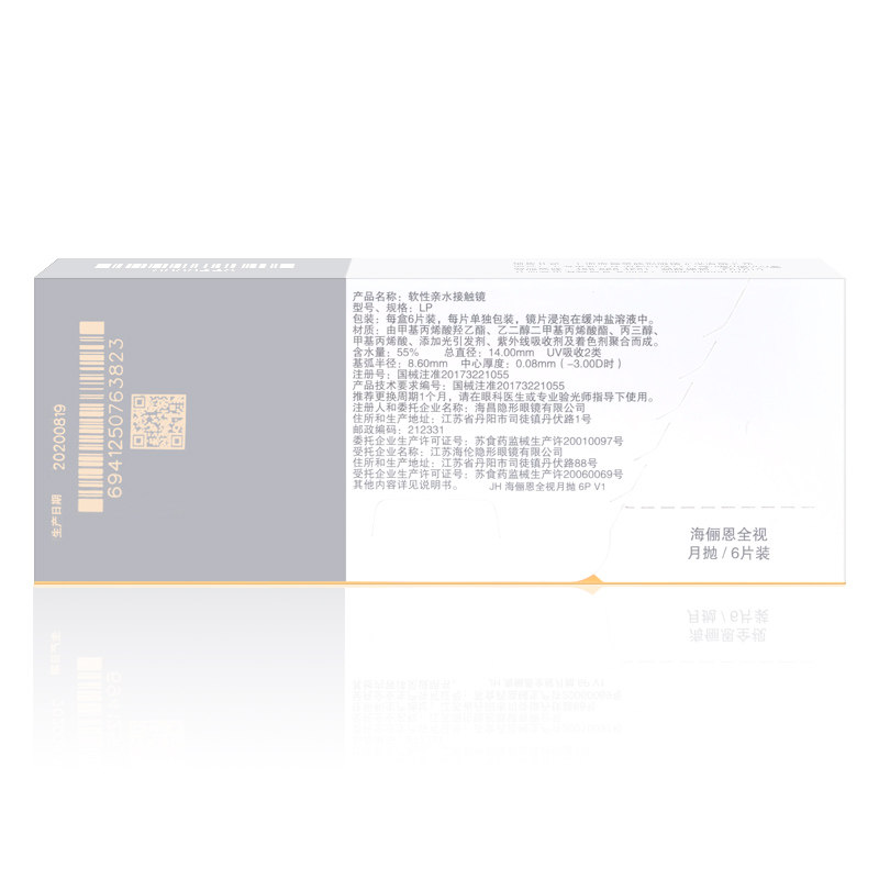 海俪恩月抛6片隐形近视眼镜影形透明镜片旗舰店官方正品男女学生