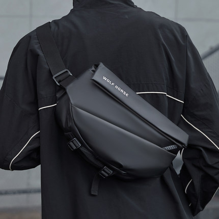 单肩包男款大容量潮摩托车胸包单肩斜挎包磁吸扣背包男士骑行跨包