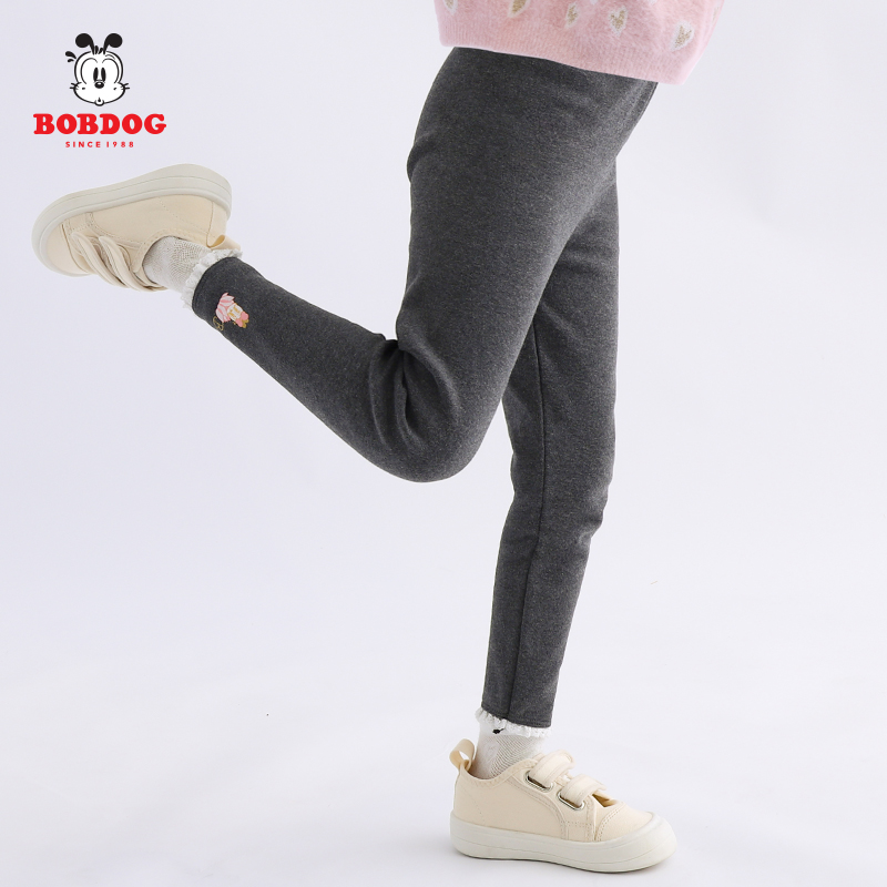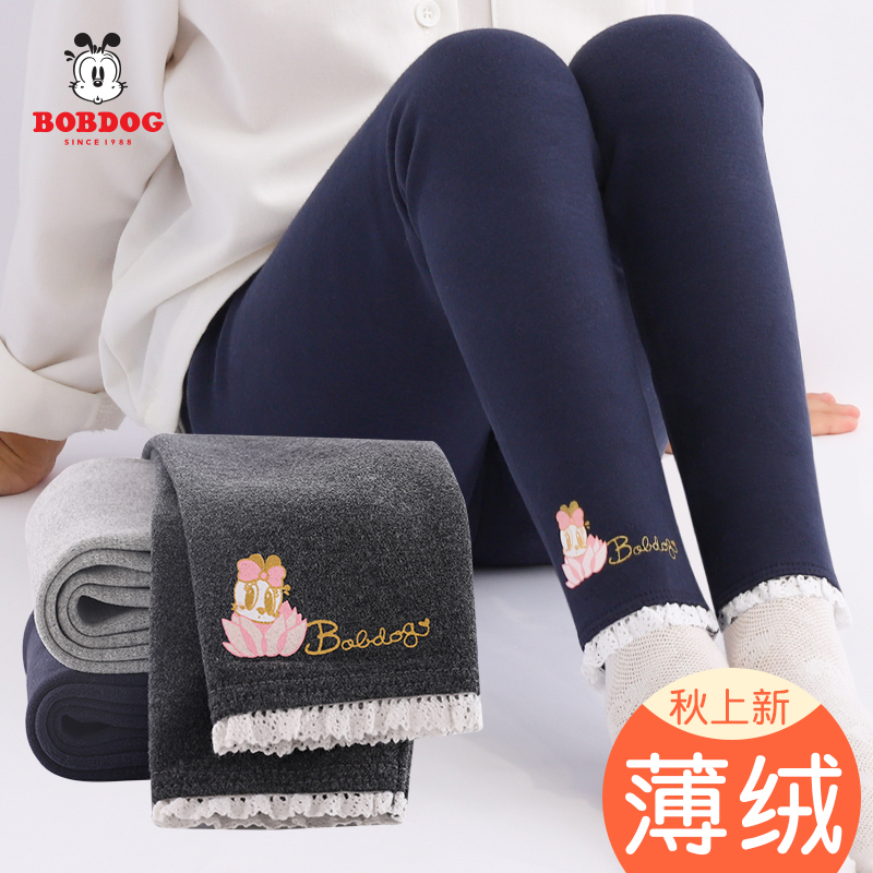 巴布豆女童裤子加绒儿童打底裤外穿冬季女孩加厚薄绒宝宝秋冬小童