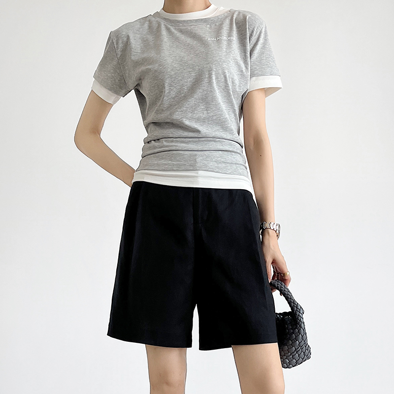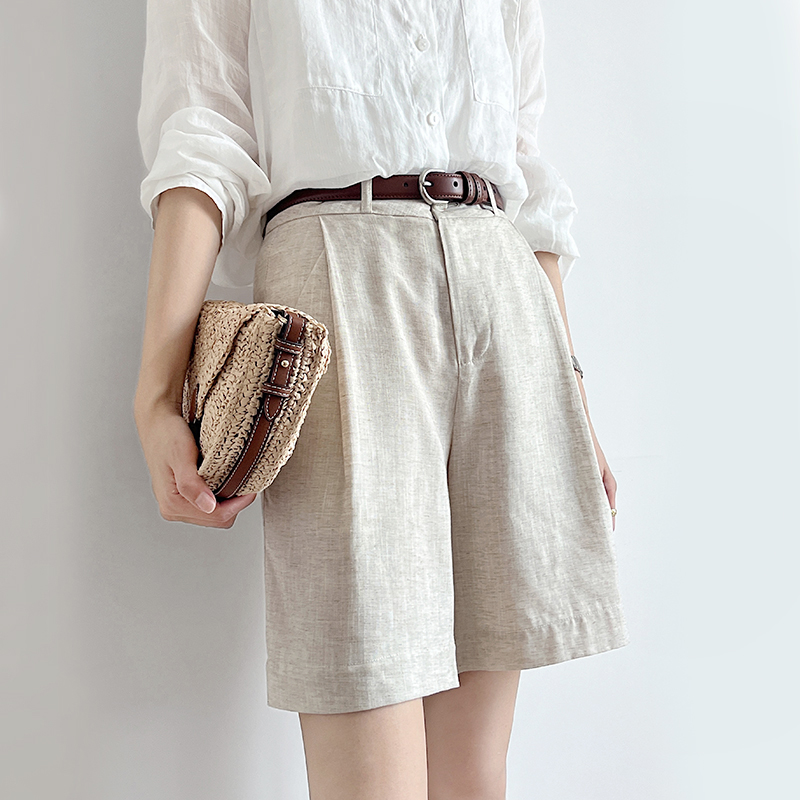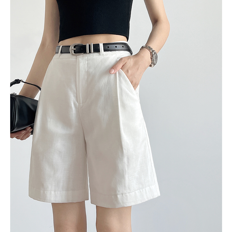 黑色棉麻短裤女夏外穿松紧高腰微胖工装a字莱赛尔天丝亚麻五分裤5