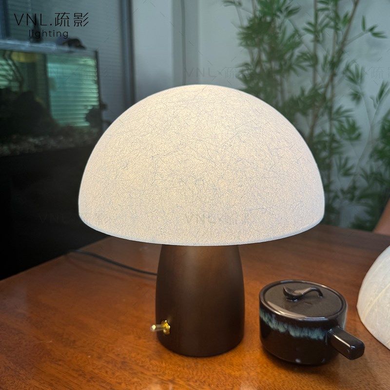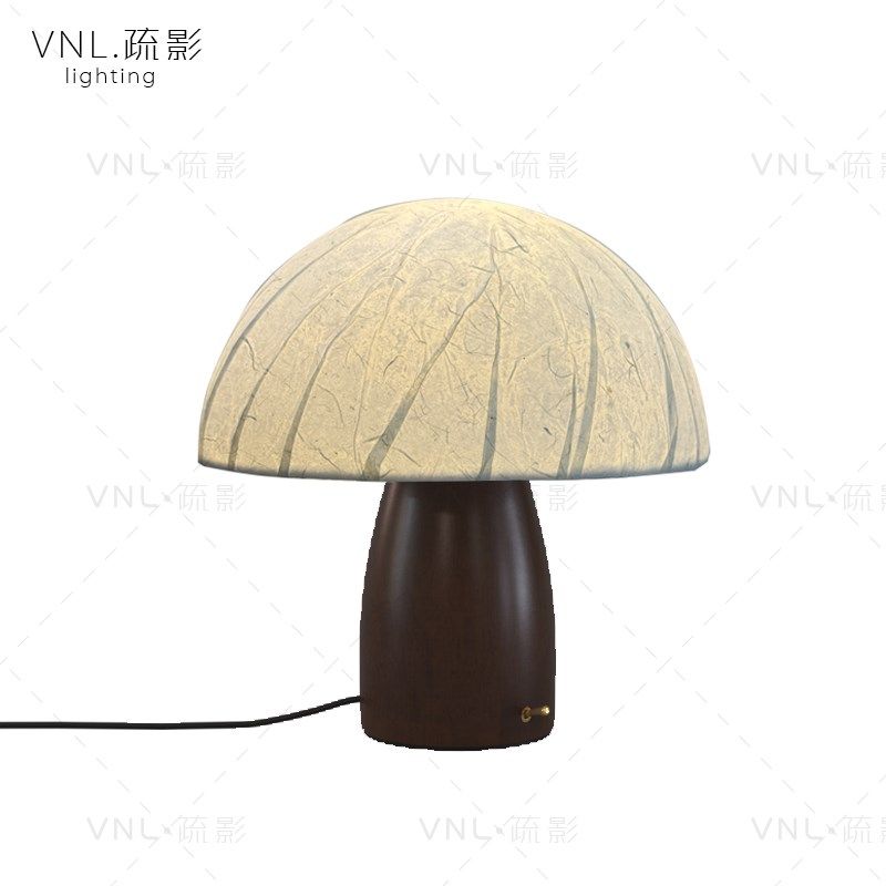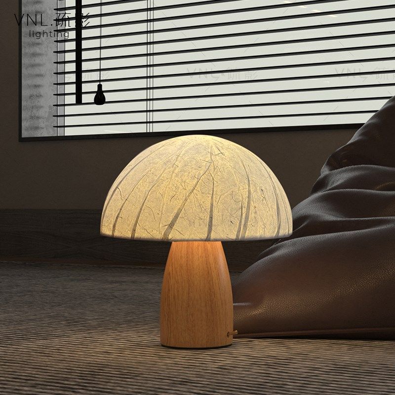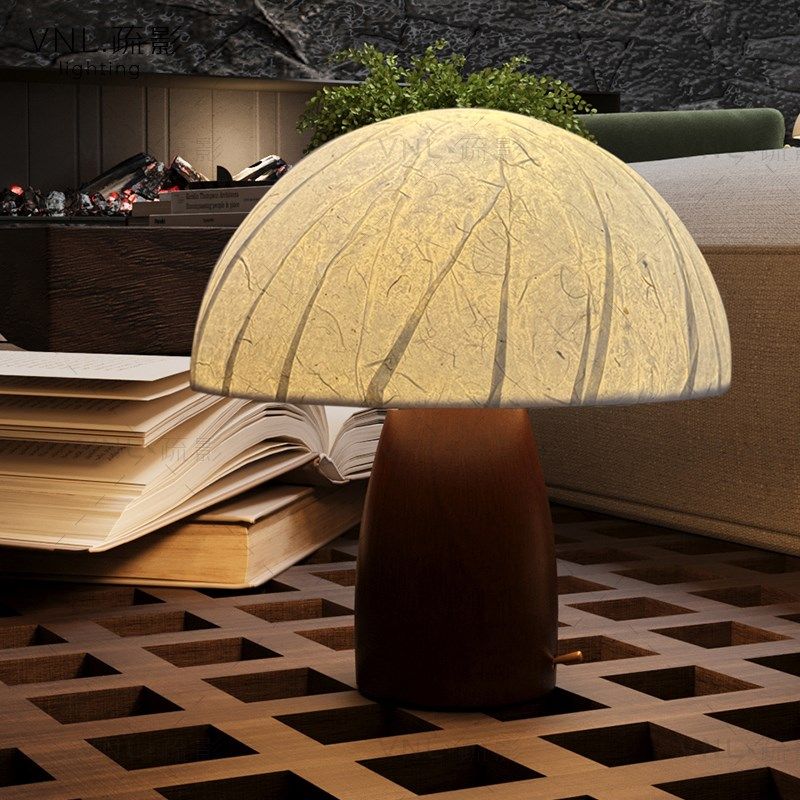 实木蘑菇卧室书房迷你台灯三色led床头灯浪漫诧寂风蚕丝灯罩夜灯