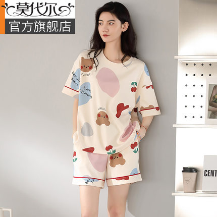 莫代尔睡衣女夏季纯棉短袖家居服