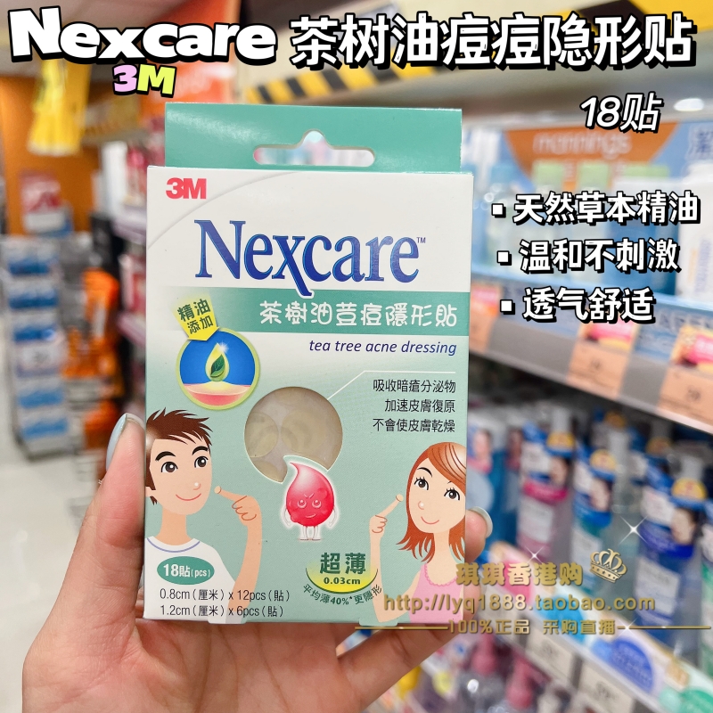 香港购 3M Nexcare超薄边茶树油痘痘隐形贴 强效吸附暗疮分泌物