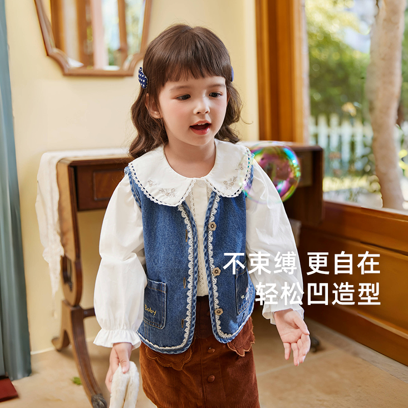 女童春秋衬衫小童娃娃领白色纯棉小儿童春装上衣洋气宝宝衬衣长袖