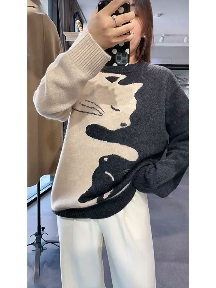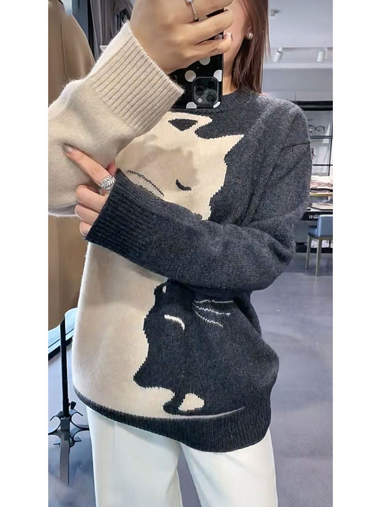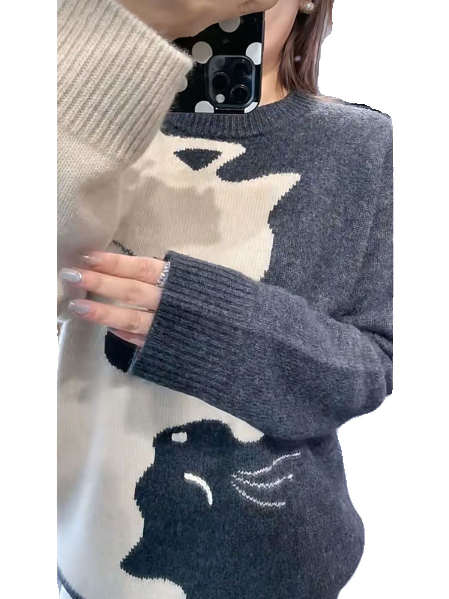 韩系慵懒设计感毛衣女奶系穿搭高级灰色针织衫秋冬超好看套头毛衣