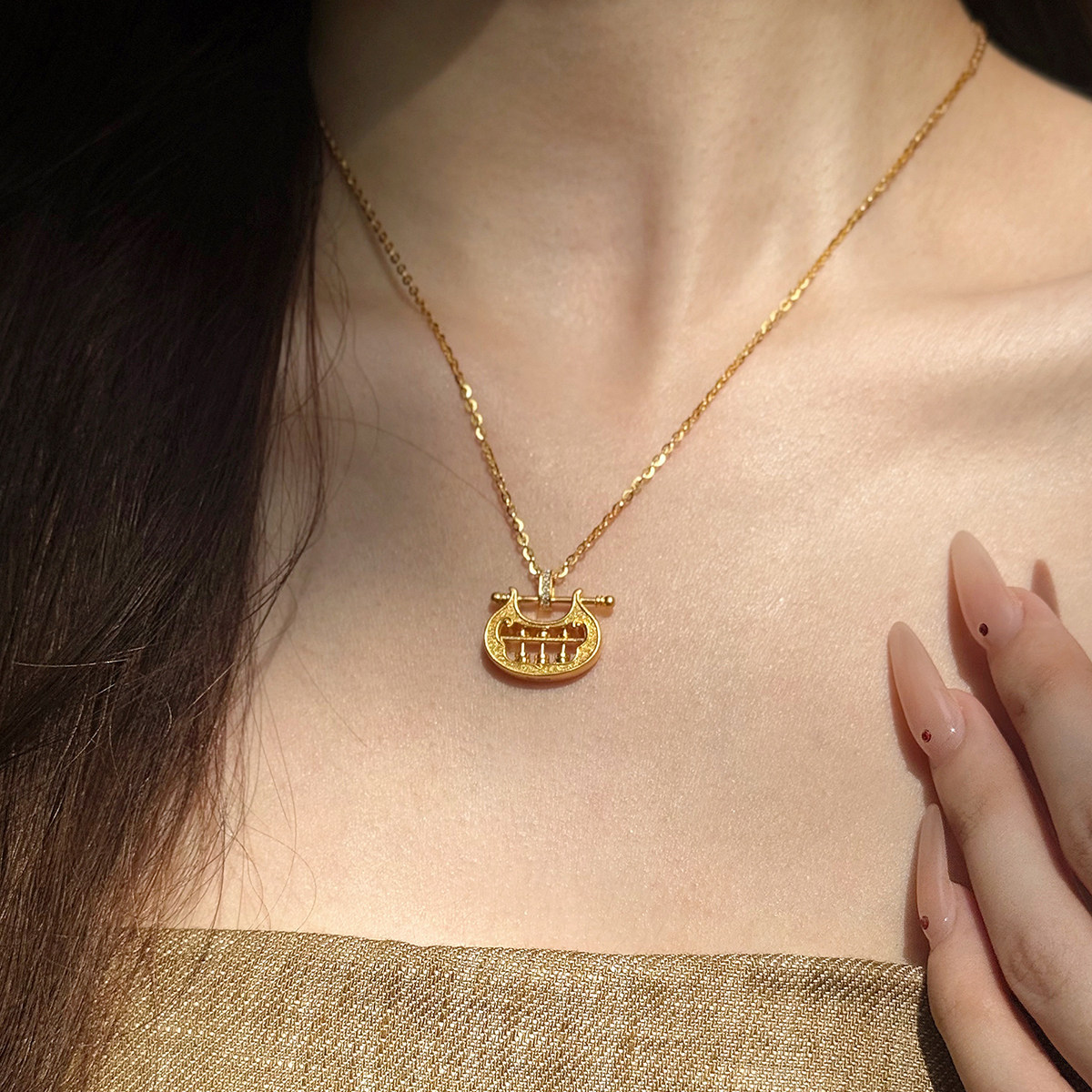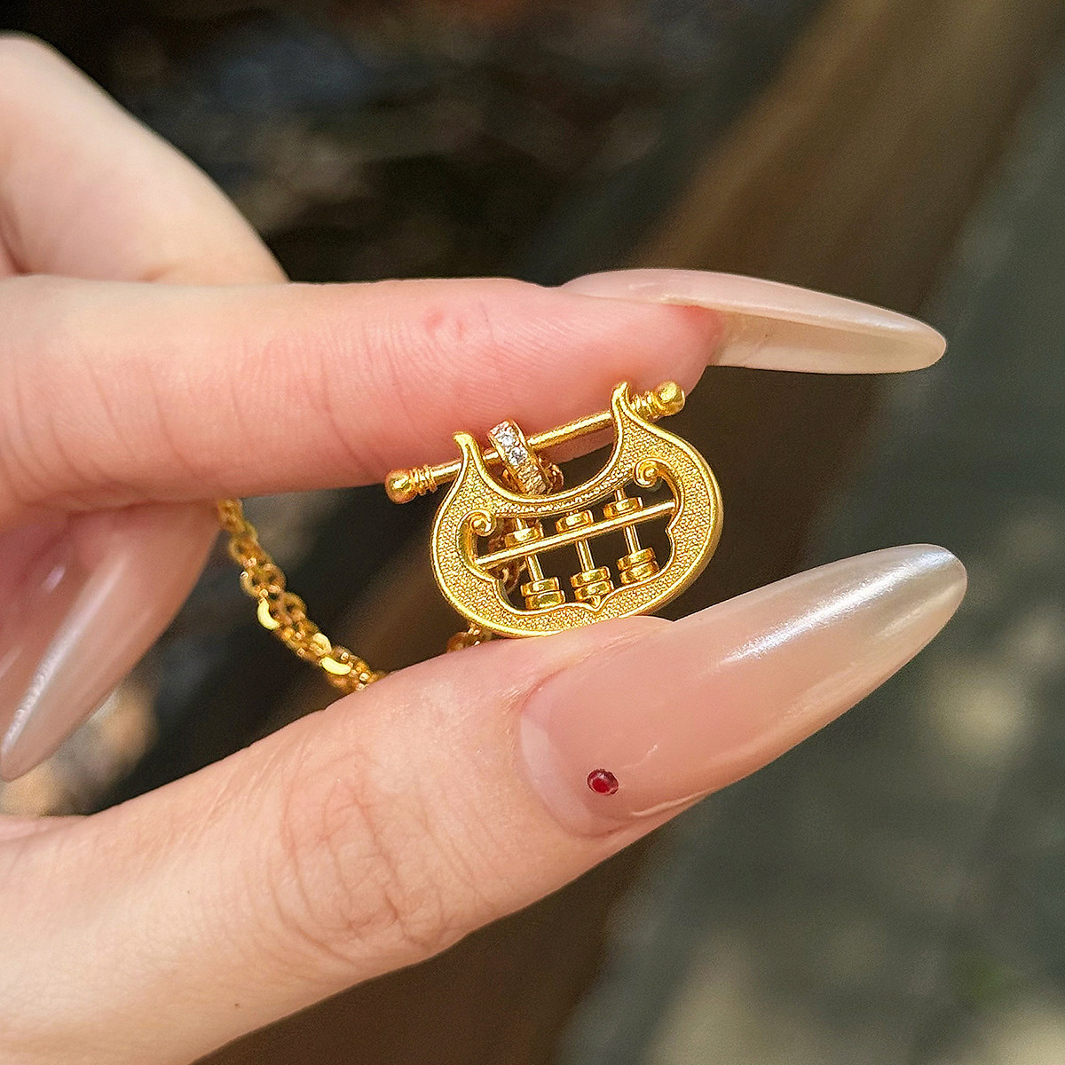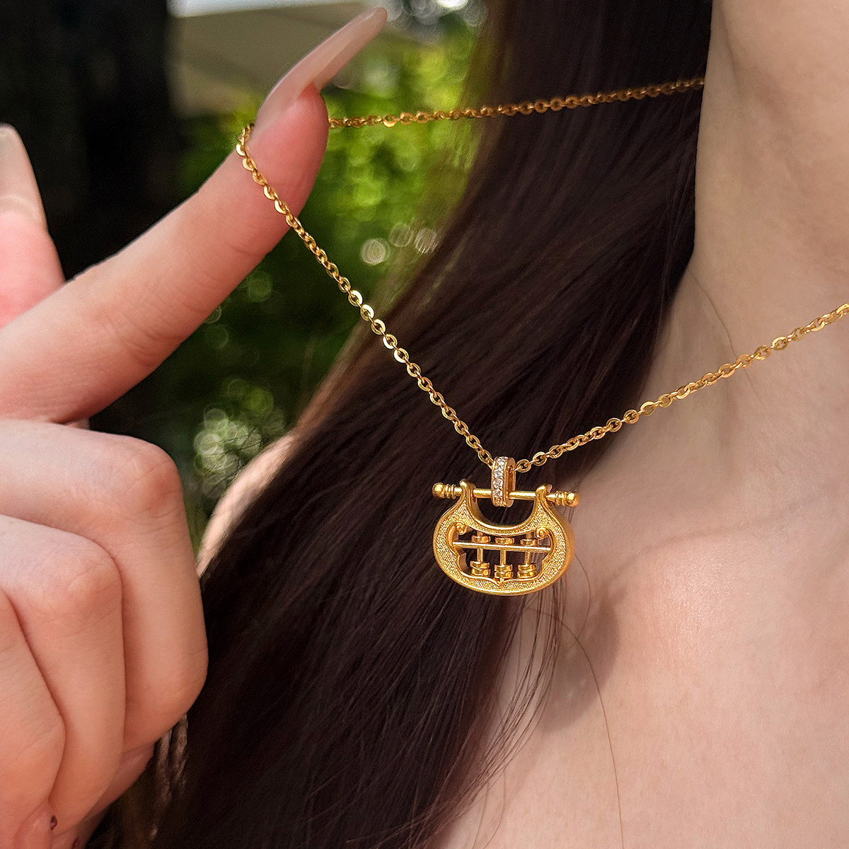吉盟珠宝5D黄金点钻吊坠999足金挂坠小福禄算盘新中式国潮送女友