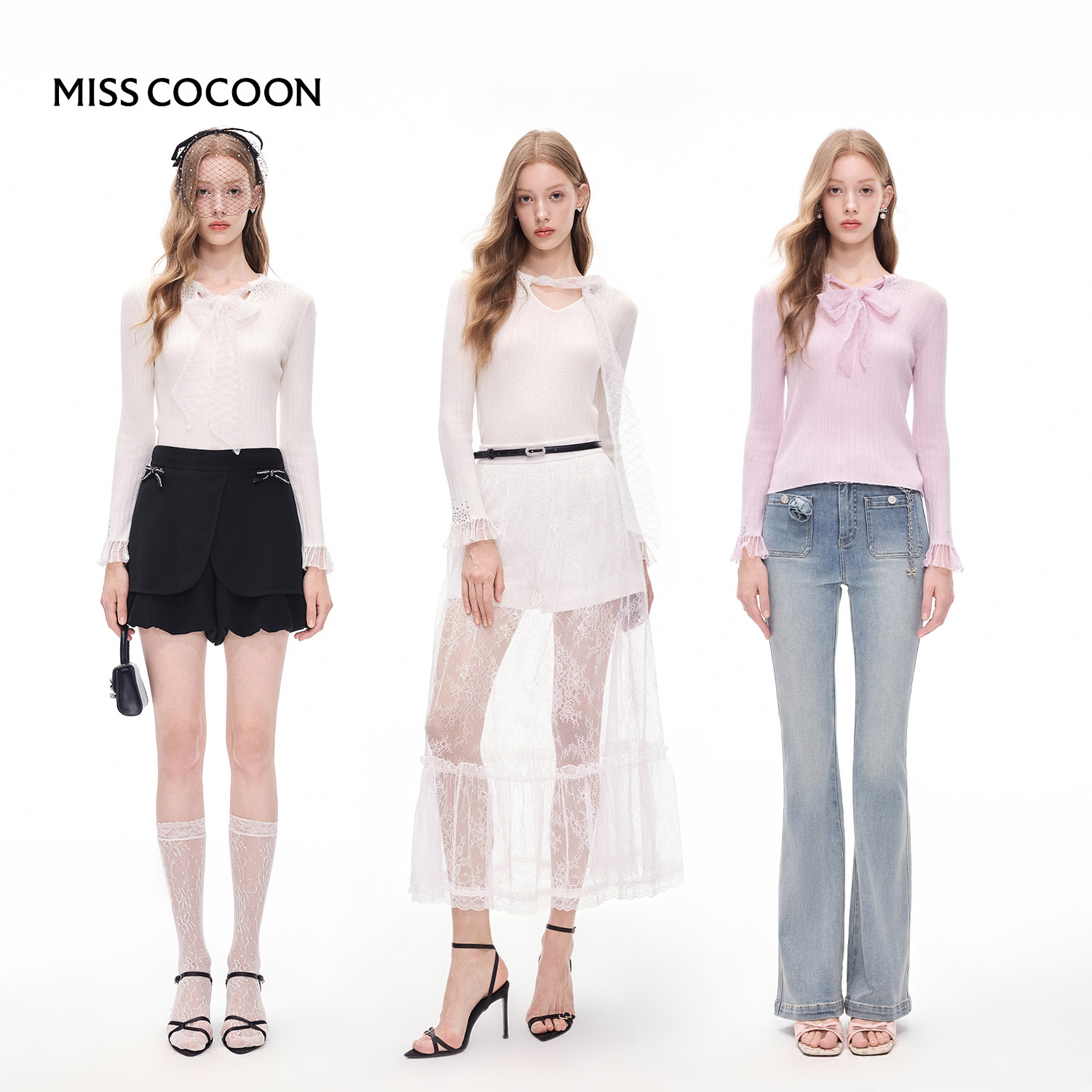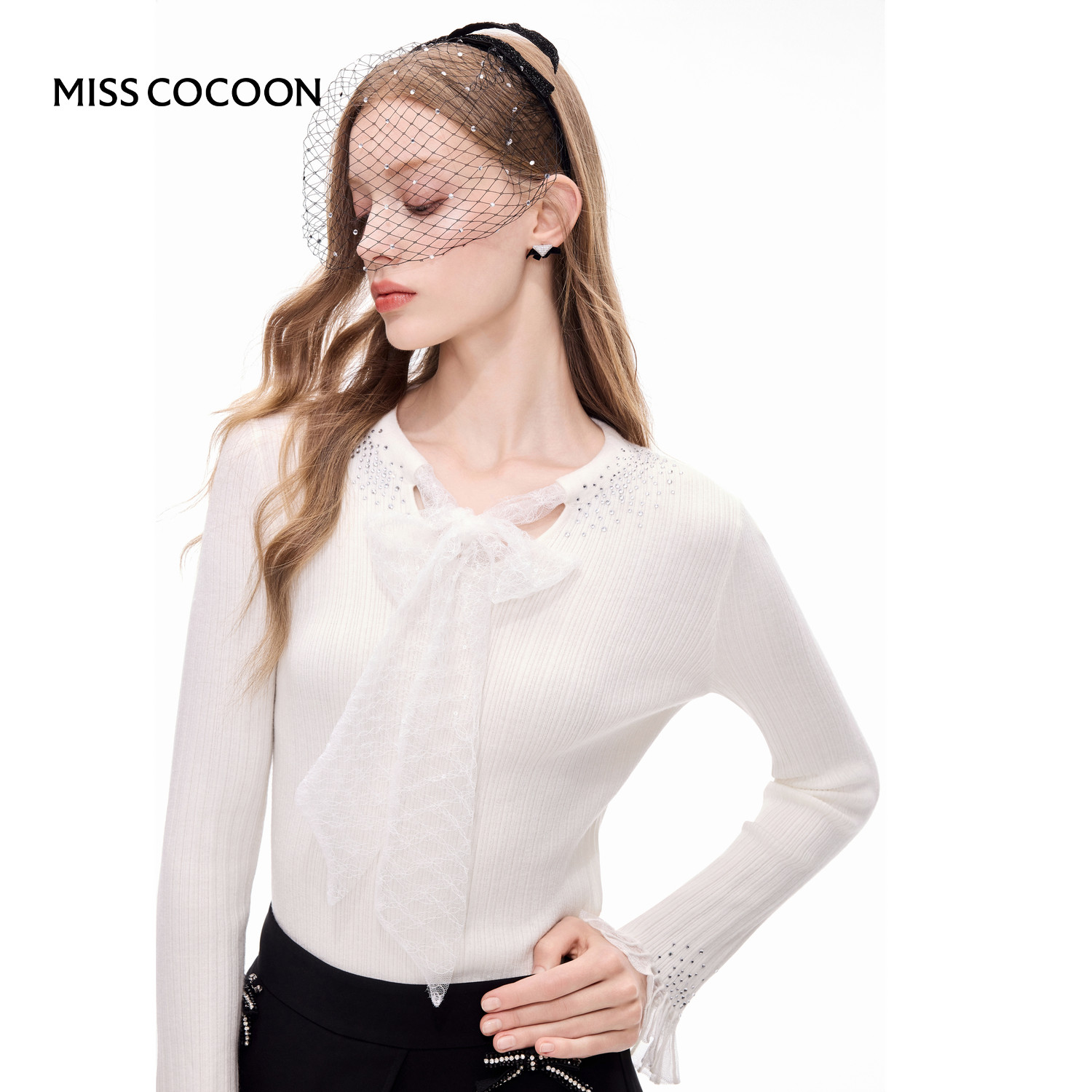 MISSCOCOON针织衫上衣系带蝴蝶结套头打底衫25秋新款