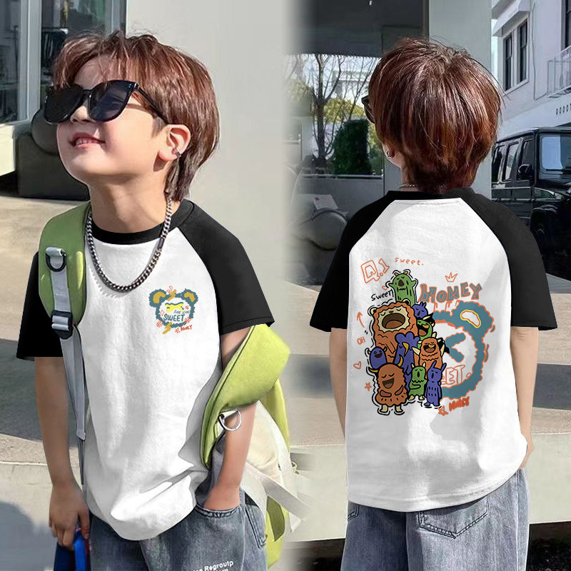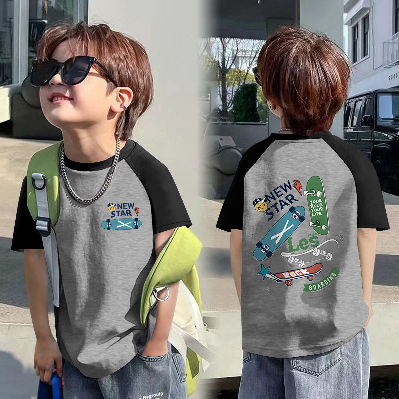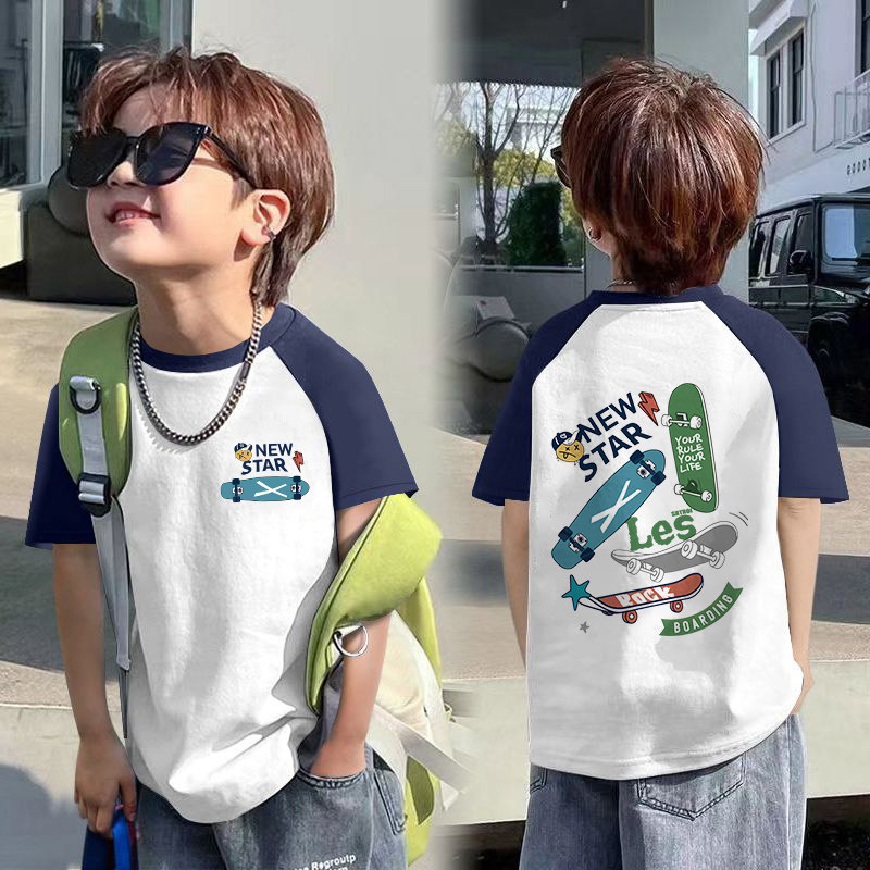男童纯棉短袖t恤夏季新款儿童插肩上衣中大童宽松卡通帅气打底ins