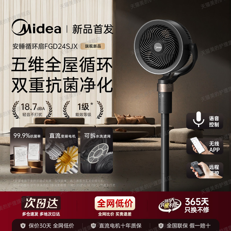 美的新品首发抗菌过滤空气循环扇智能语音落地电风扇家用静音卧室