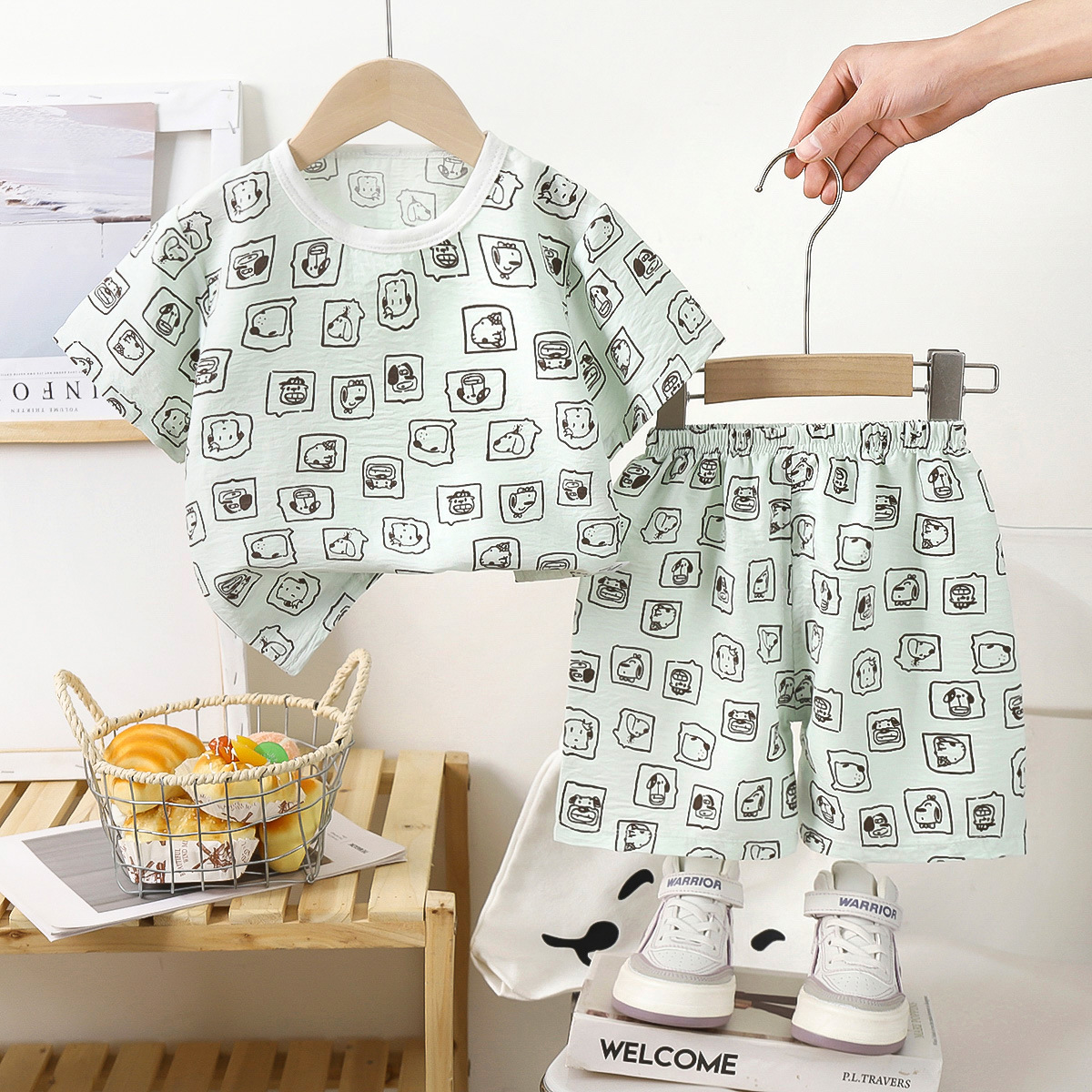 儿童短袖套装2025夏季新款男童云朵棉t恤短裤宽松中小童两件套