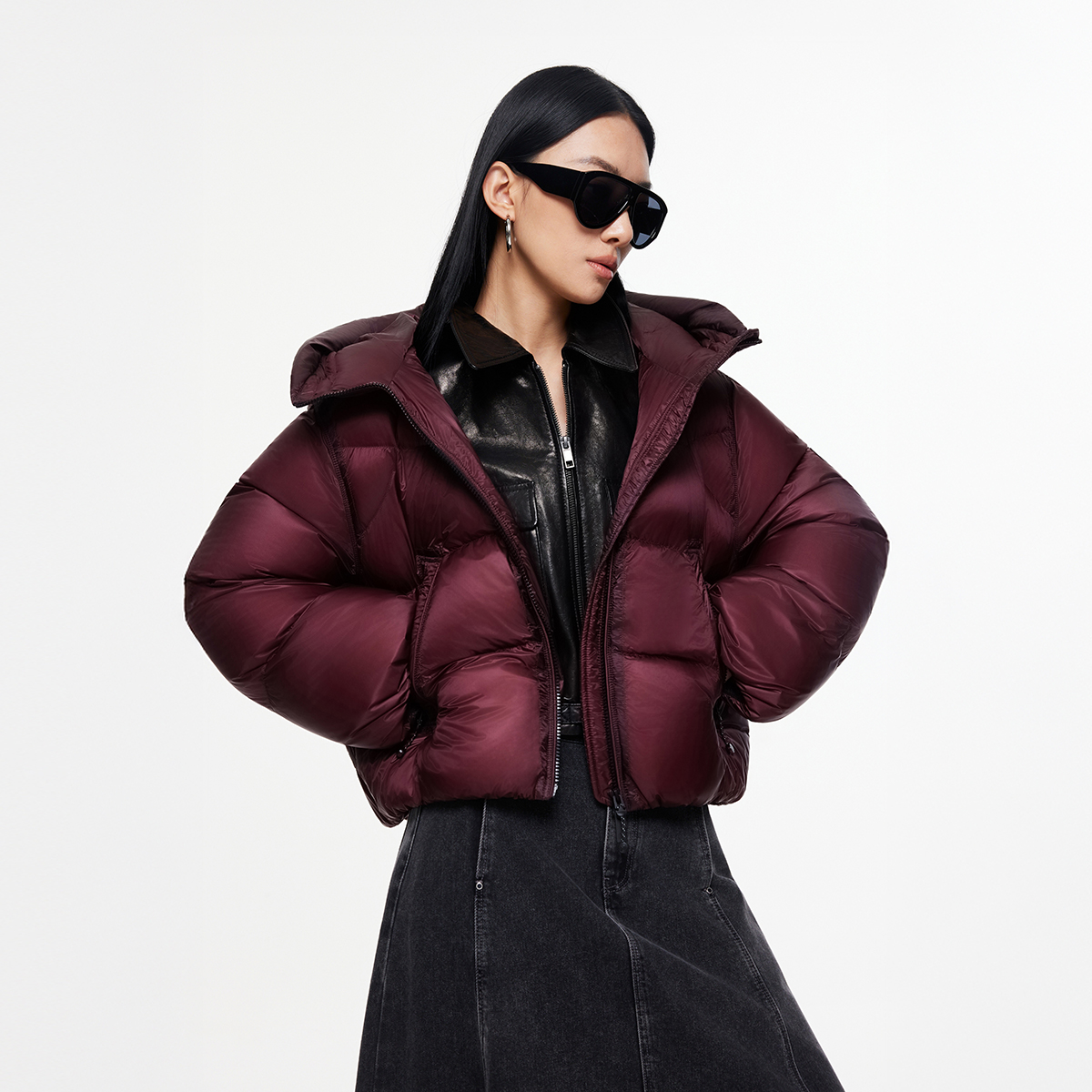 ONLY2025冬季新款90白鸭绒连帽立领抽绳宽松小个子短款羽绒服女