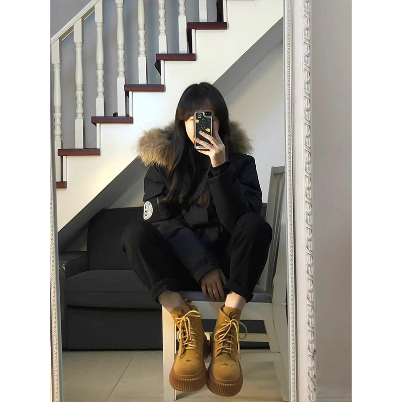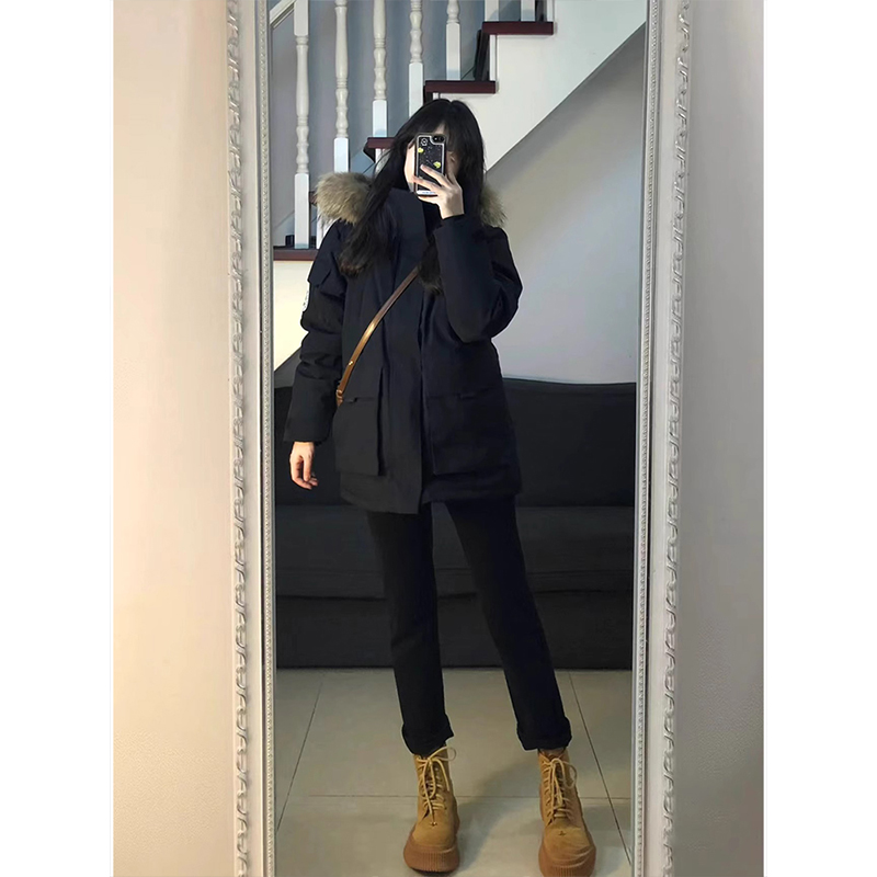 300斤特大码胖mm黑色连帽工装棉服女春秋保暖派克服羽绒棉衣外套