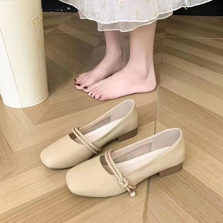 2025新款春季温柔配裙子平底小皮鞋浅口法式低跟豆豆鞋玛丽珍单鞋