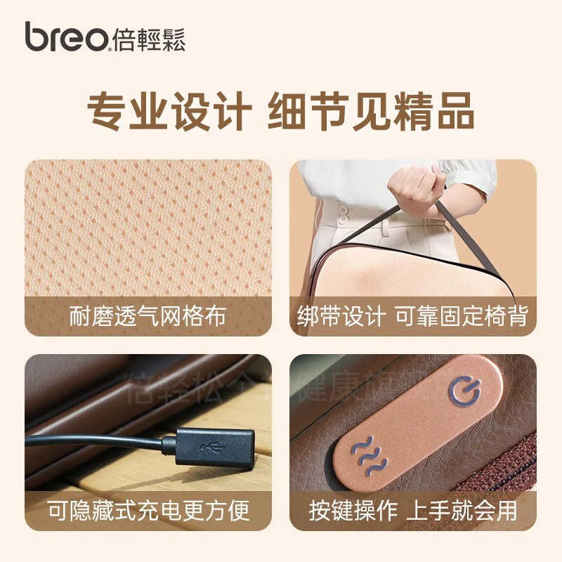 breo倍轻松腰部背部按摩器护腰椎按摩热敷全身揉捏家用靠背按摩仪
