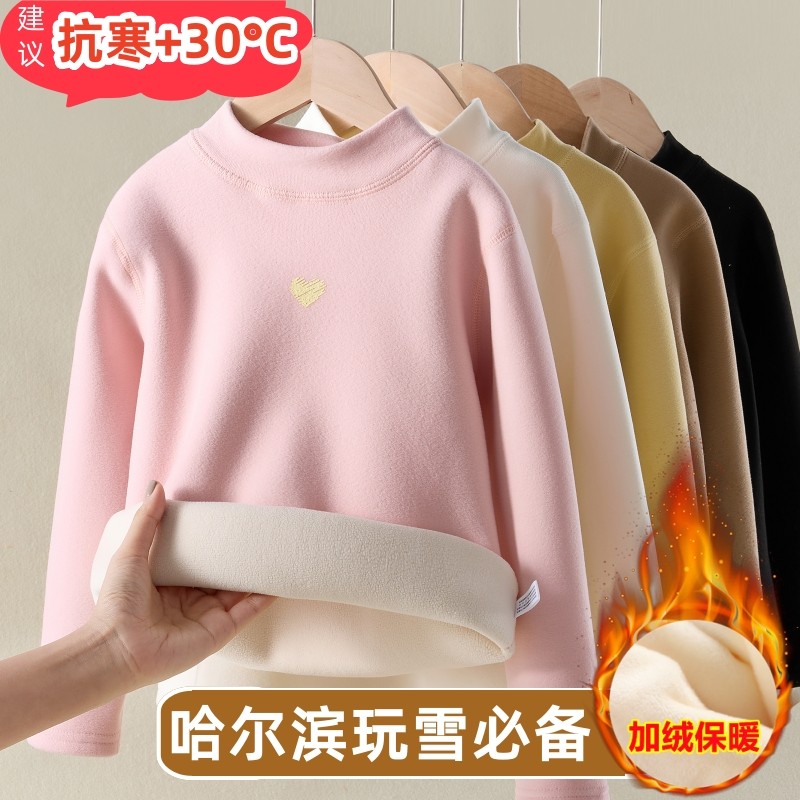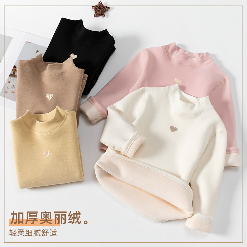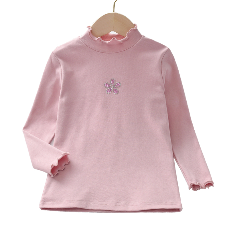 女童打底衫高领春秋纯棉宝宝秋冬白色秋季薄款木耳边内搭儿童上衣