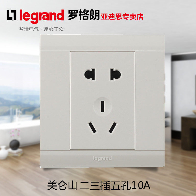 罗格朗插座开关美仑山五孔插座面板10A电源墙壁开关插座86型5孔
