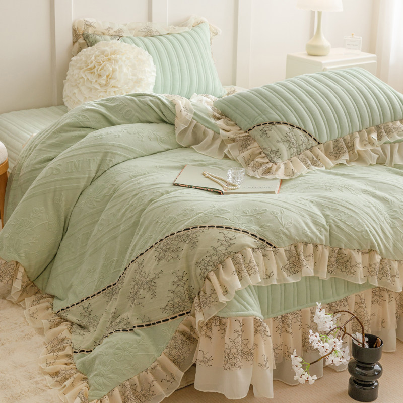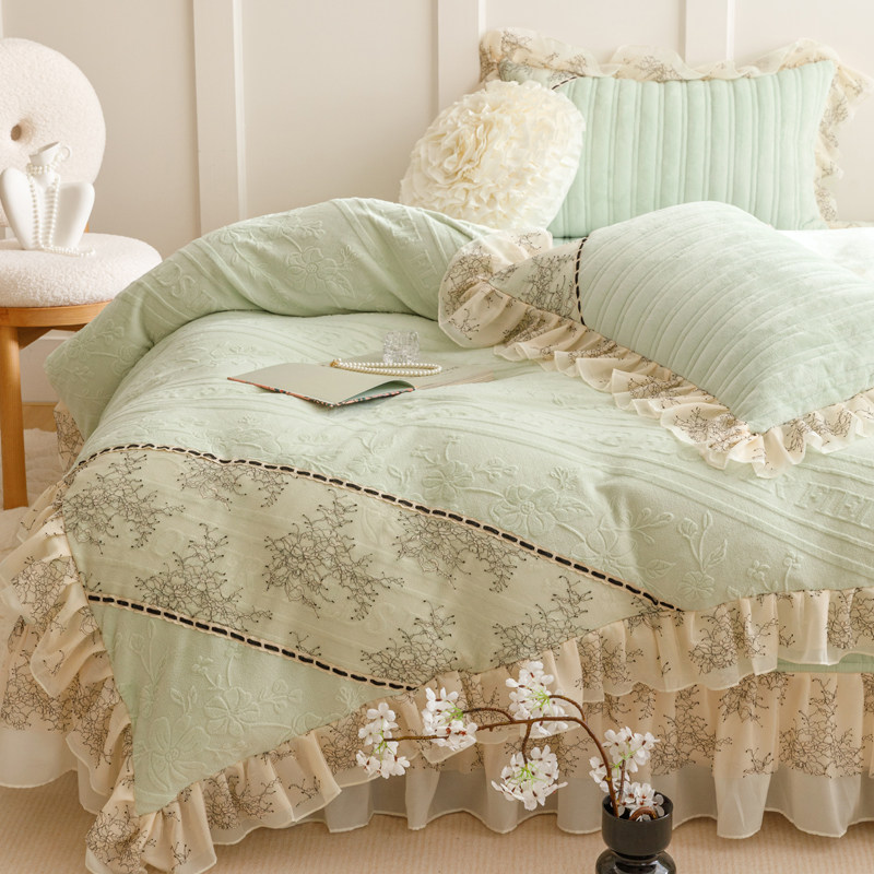 法式冬季加厚牛奶绒四件套公主风