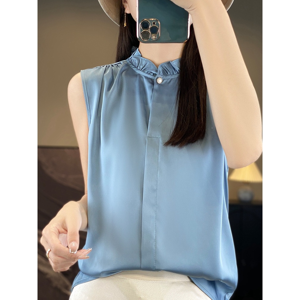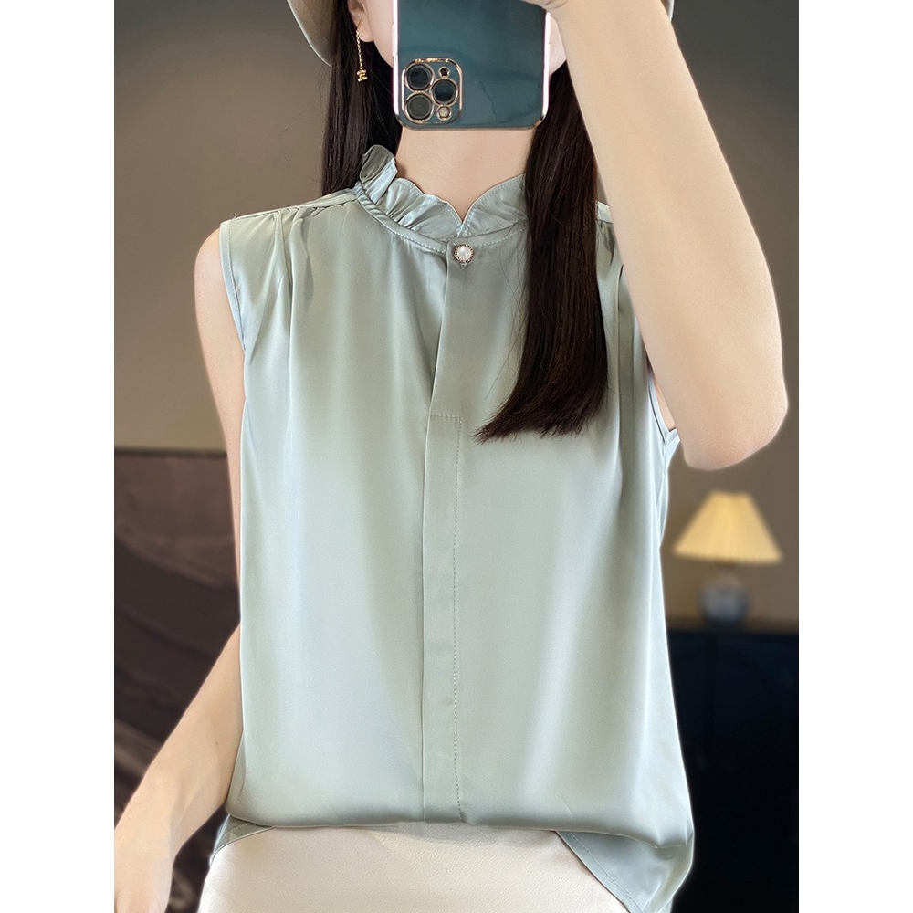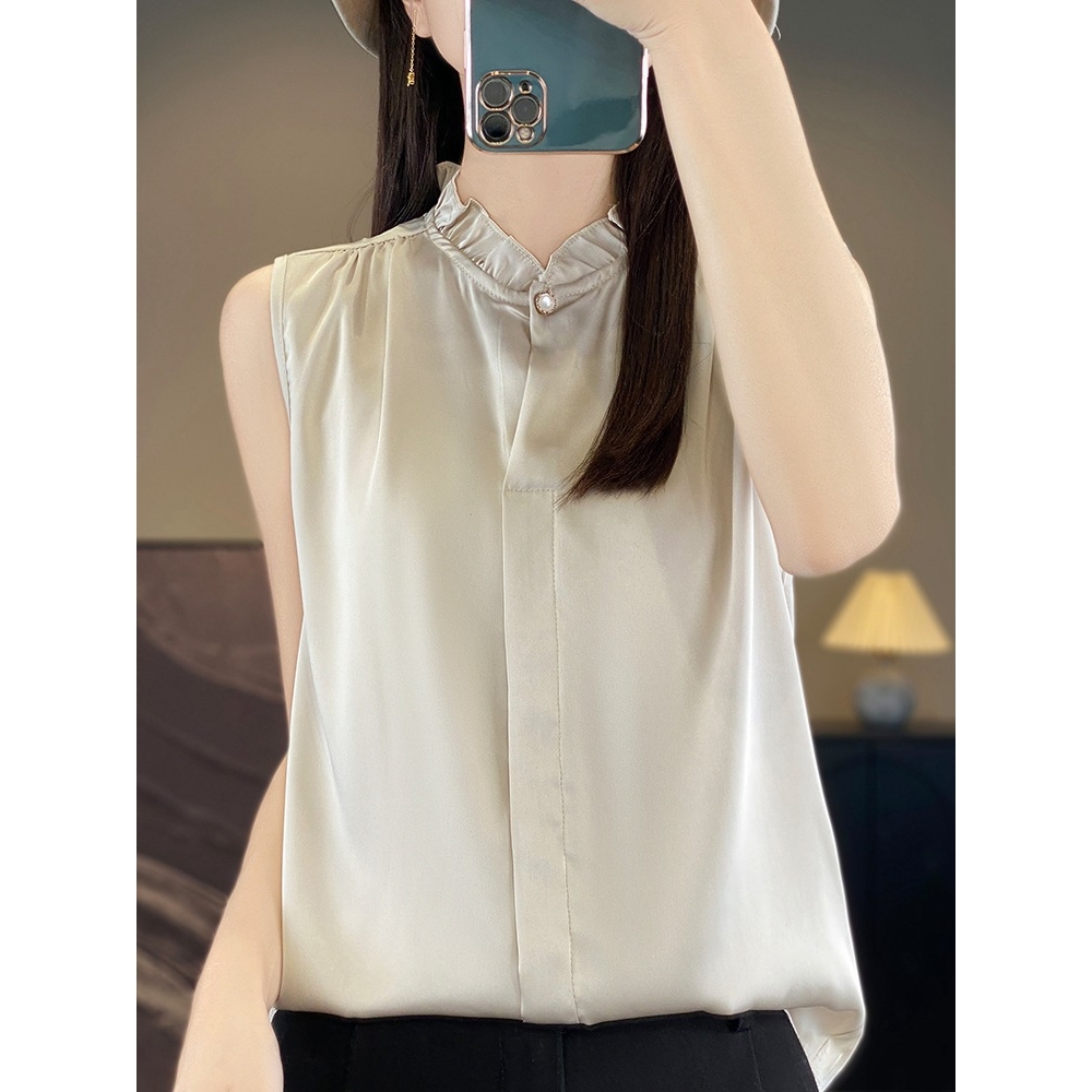 花边领打底背心女气质木耳边立领叠穿内搭缎面无袖衬衫白色黑色