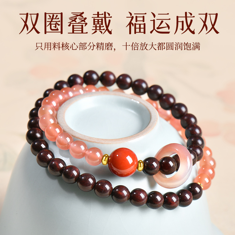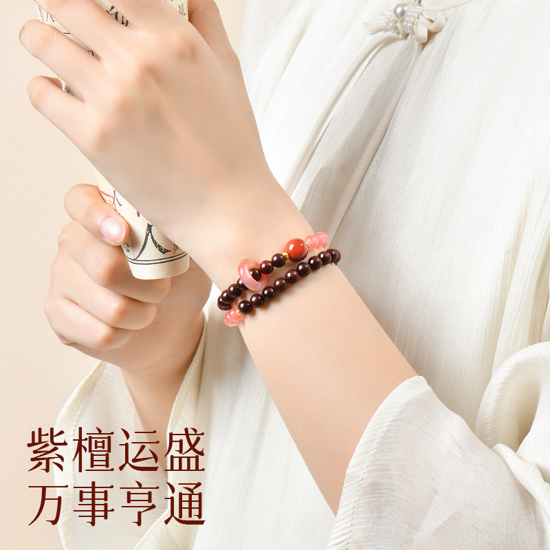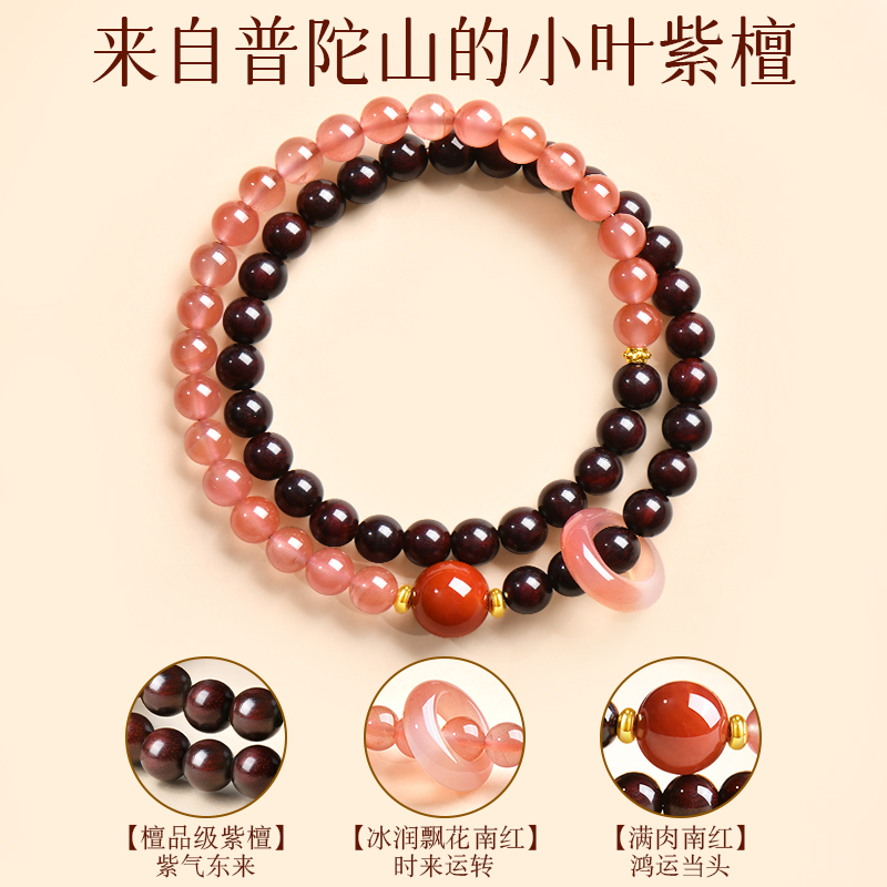 普陀山小叶紫檀手串女款天然木质文玩佛珠双圈手链南红水晶转运珠